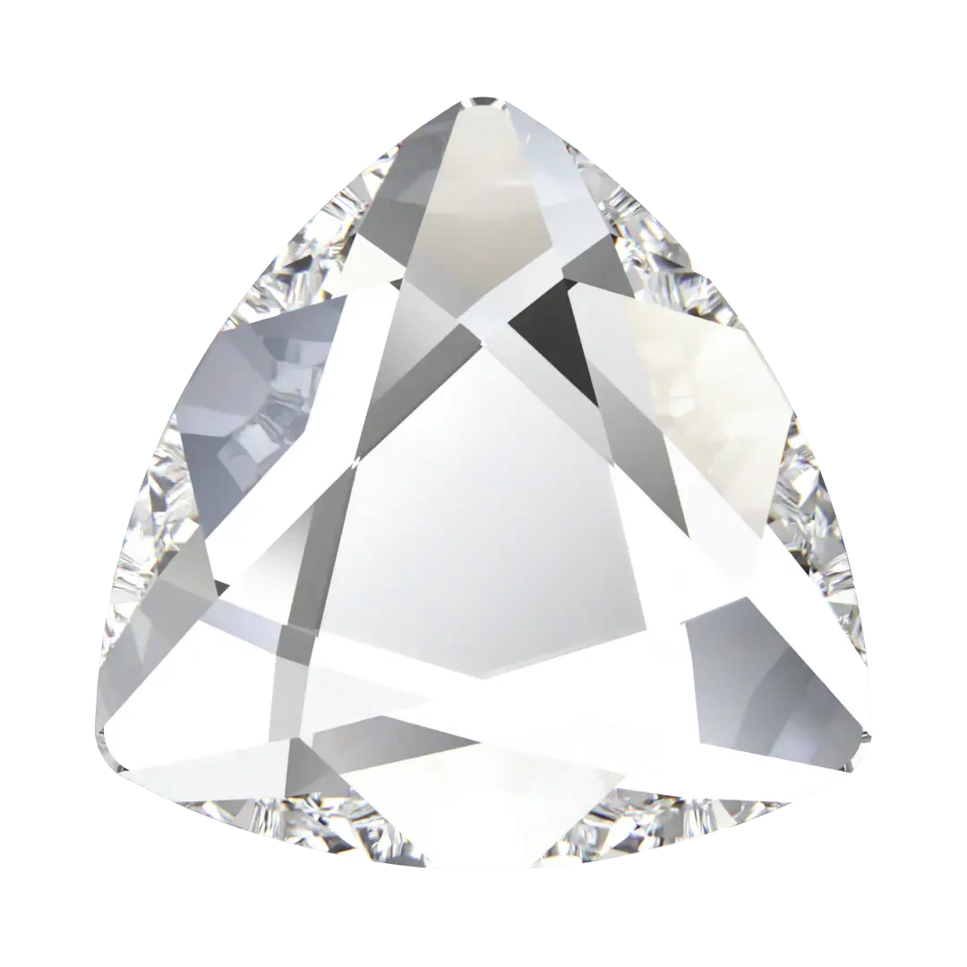 Swarovski rhinestones non hotfix Trilliant (2472) in Crystal are flat back crystals that can easily be applied to most surfaces with glue. Swarovski Trilliant shaped crystals are cut into a triangular shape with rounded edges and are known for their striking brilliance and unique faceting. The trilliant shape features a flat top with multiple facets on the sides that reflect light in a beautiful and sparkling way.