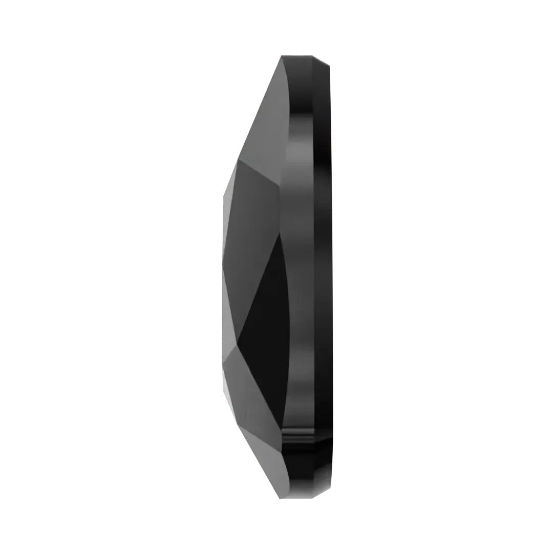 Swarovski rhinestones non hotfix Trilliant (2472) in Jet UNFOILED are flat back crystals that can easily be applied to most surfaces with glue. Swarovski Trilliant shaped crystals are cut into a triangular shape with rounded edges and are known for their striking brilliance and unique faceting. The trilliant shape features a flat top with multiple facets on the sides that reflect light in a beautiful and sparkling way.