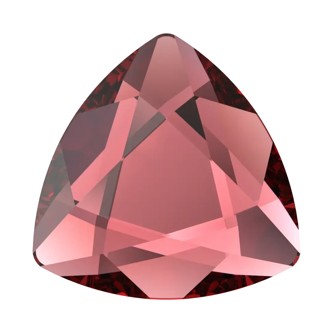 Swarovski rhinestones non hotfix Trilliant (2472) in Scarlet are flat back crystals that can easily be applied to most surfaces with glue. Swarovski Trilliant shaped crystals are cut into a triangular shape with rounded edges and are known for their striking brilliance and unique faceting. The trilliant shape features a flat top with multiple facets on the sides that reflect light in a beautiful and sparkling way.