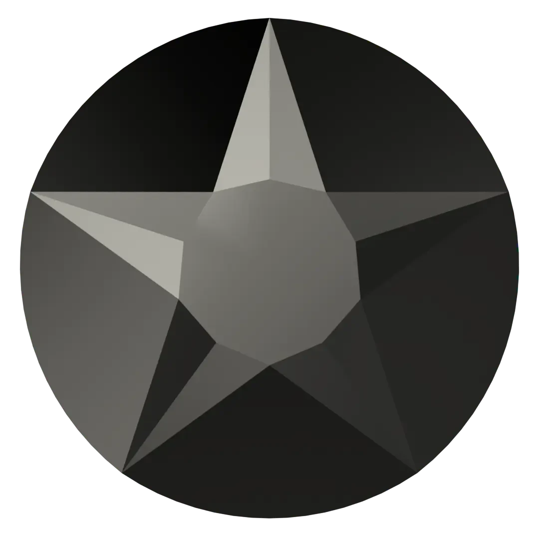 Swarovski rhinestones non hotfix Xirius Star Rose Cut (2100) in Jet Hematite are flat back crystals that can easily be applied to most surfaces with glue. Swarovski Xirius Star Rose is a sophisticated star shape on a round base, available in the same sizes as Xirius Flat Backs and shares all benefits of with easy handling, consistent tooling in production, cost effectiveness, and a wide assortment.