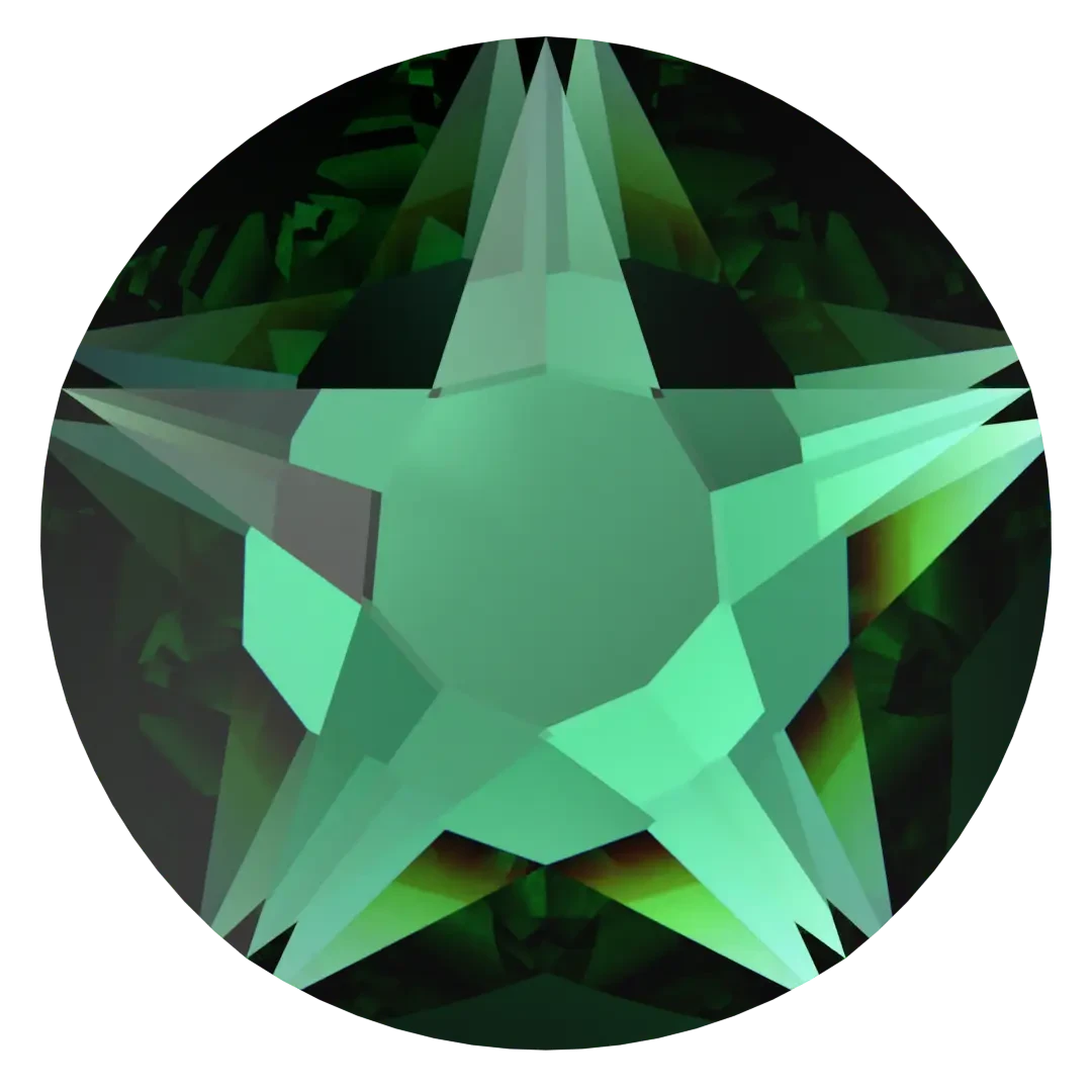 Swarovski rhinestones non hotfix Xirius Star Rose Cut (2100) in Majestic Green are flat back crystals that can easily be applied to most surfaces with glue. Swarovski Xirius Star Rose is a sophisticated star shape on a round base, available in the same sizes as Xirius Flat Backs and shares all benefits of with easy handling, consistent tooling in production, cost effectiveness, and a wide assortment.