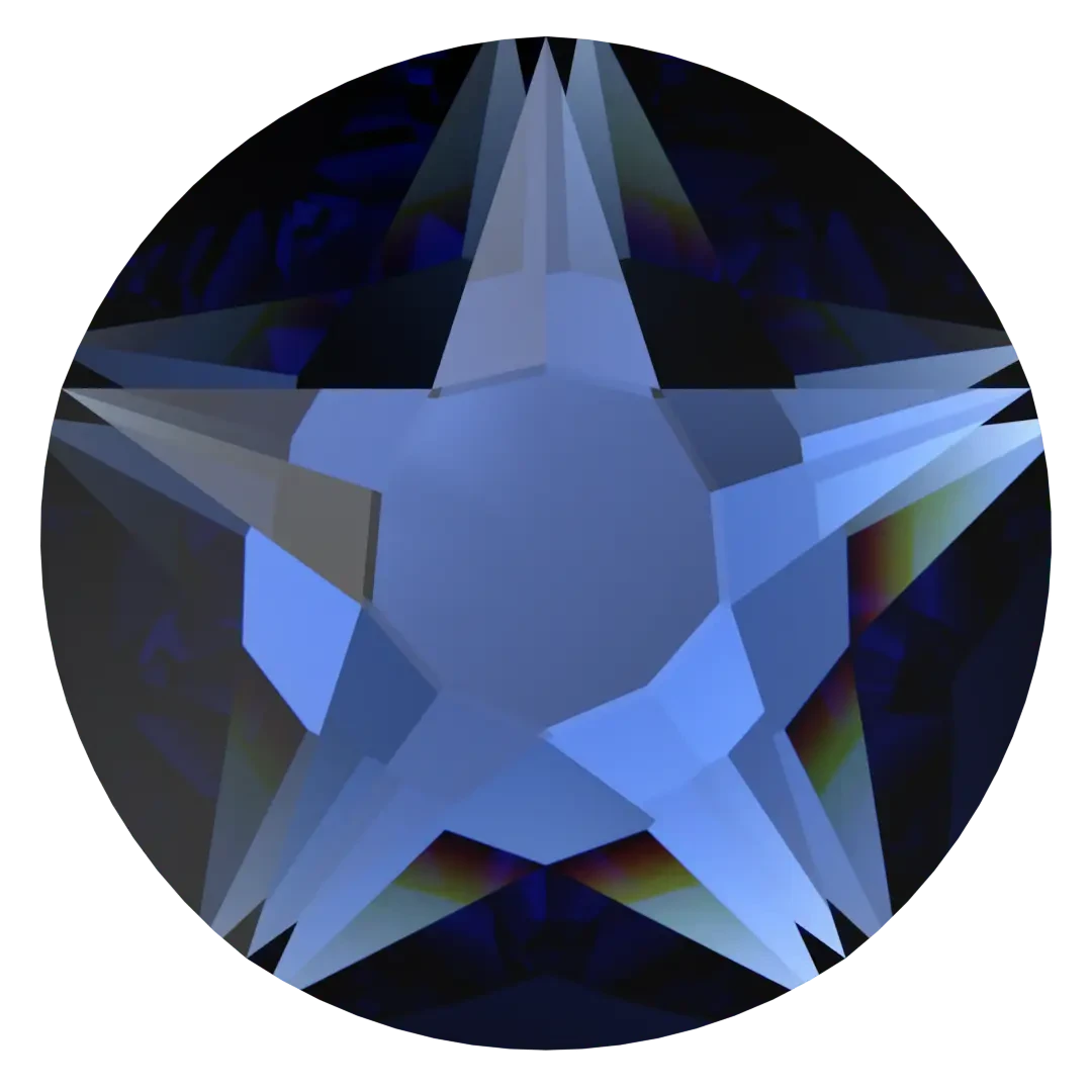 Swarovski rhinestones non hotfix Xirius Star Rose Cut (2100) in Recreated Dark Sapphire are flat back crystals that can easily be applied to most surfaces with glue. Swarovski Xirius Star Rose is a sophisticated star shape on a round base, available in the same sizes as Xirius Flat Backs and shares all benefits of with easy handling, consistent tooling in production, cost effectiveness, and a wide assortment.