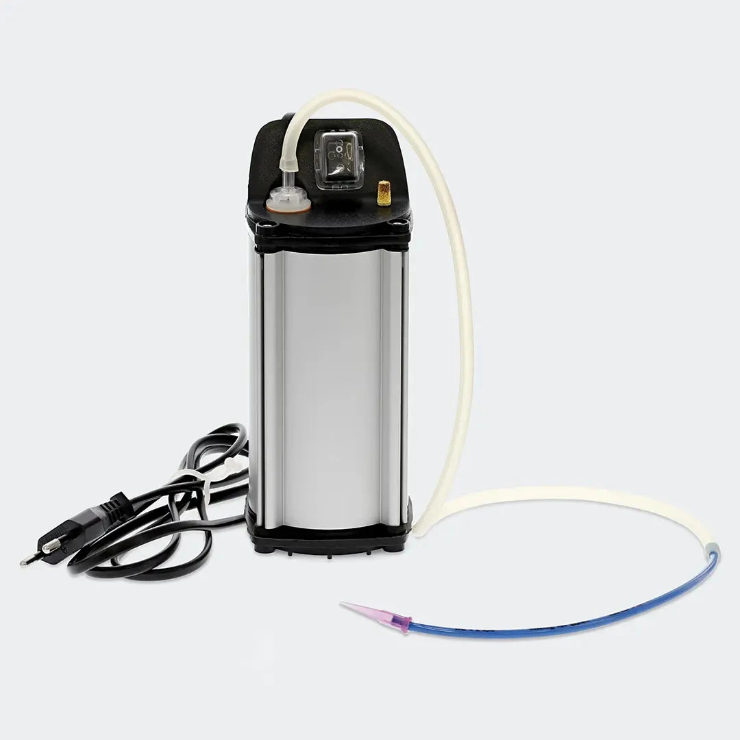 The Swarovski Vacuum Pump (9040/022) is used in conjunction with the Swarovski Vacuum Adaptor and allows Swarovski Rivets to be easily picked up and applied when using the Fly Press. The Vacuum Adaptor connection is integrated directly into the Upper Die which are available with different thread strengths. When using the Swarovski Vacuum Adapter, dies with an M8 thread are required. Alternatively, dies with M6 threads are available for presses from other manufacturers, or when not using a vacuum adapter.
