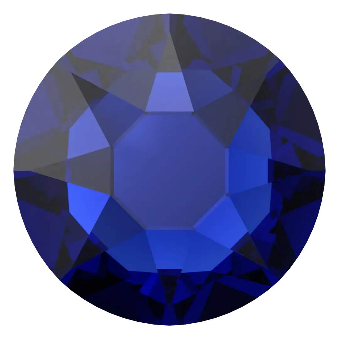 Swarovski hotfix crystals Round (2000, 2038 & 2078) in Cobalt are flat back crystals where the reverse side of the crystal has been pre-coated with a heat-sensitive glue. Cobalt is a vibrant and intense shade of blue that draws its name from the metal cobalt, known for producing this distinct colour. This blue hue is characterized by its deep and rich appearance, often leaning towards the darker spectrum. Cobalt exudes a sense of strength and sophistication, capturing attention with its bold and striking presence. It is a versatile colour, equally suitable for both formal and casual settings, and is frequently utilized in various applications, from art and fashion to interior design. The vivid and enduring nature of cobalt makes it a captivating choice that adds depth and energy to any context.