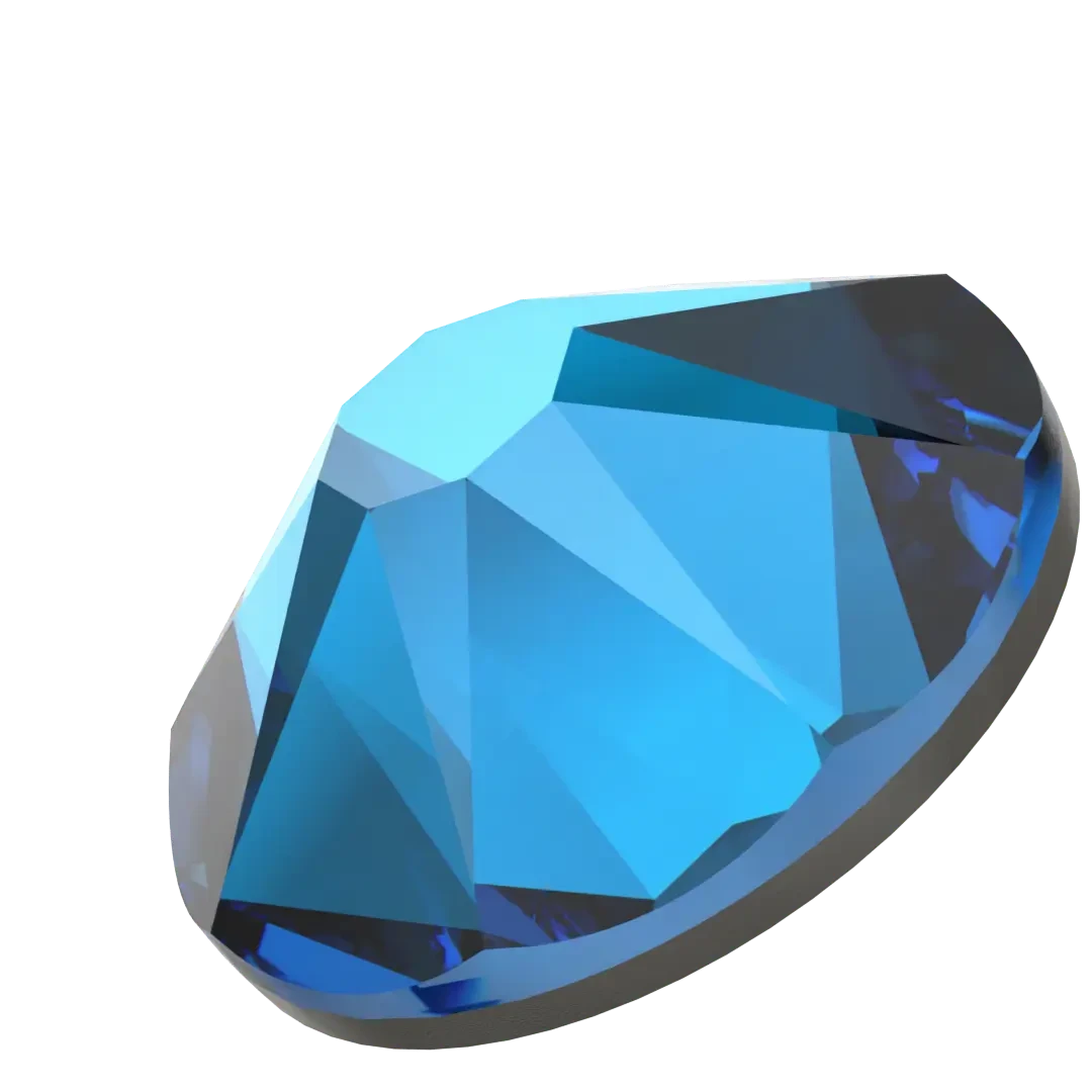 Swarovski hotfix crystals Round (2000 Rose, 2038 Xilion & 2078 Xirius) in Crystal Bermuda Blue are flat back crystals where the reverse side of the crystal has been pre-coated with a heat-sensitive glue. Crystal Bermuda Blue is a bright, tropical shade of blue that is reminiscent of the crystal clear waters of Bermuda. It is a vibrant and energetic colour that is often associated with summertime, the beach, and vacation. Crystal Bermuda Blue pairs well with other bright, tropical colours like pink, coral, and yellow, as well as neutral colours like white and beige. Overall, Crystal Bermuda Blue is a refreshing and invigorating colour that evokes feelings of happiness, relaxation, and adventure.