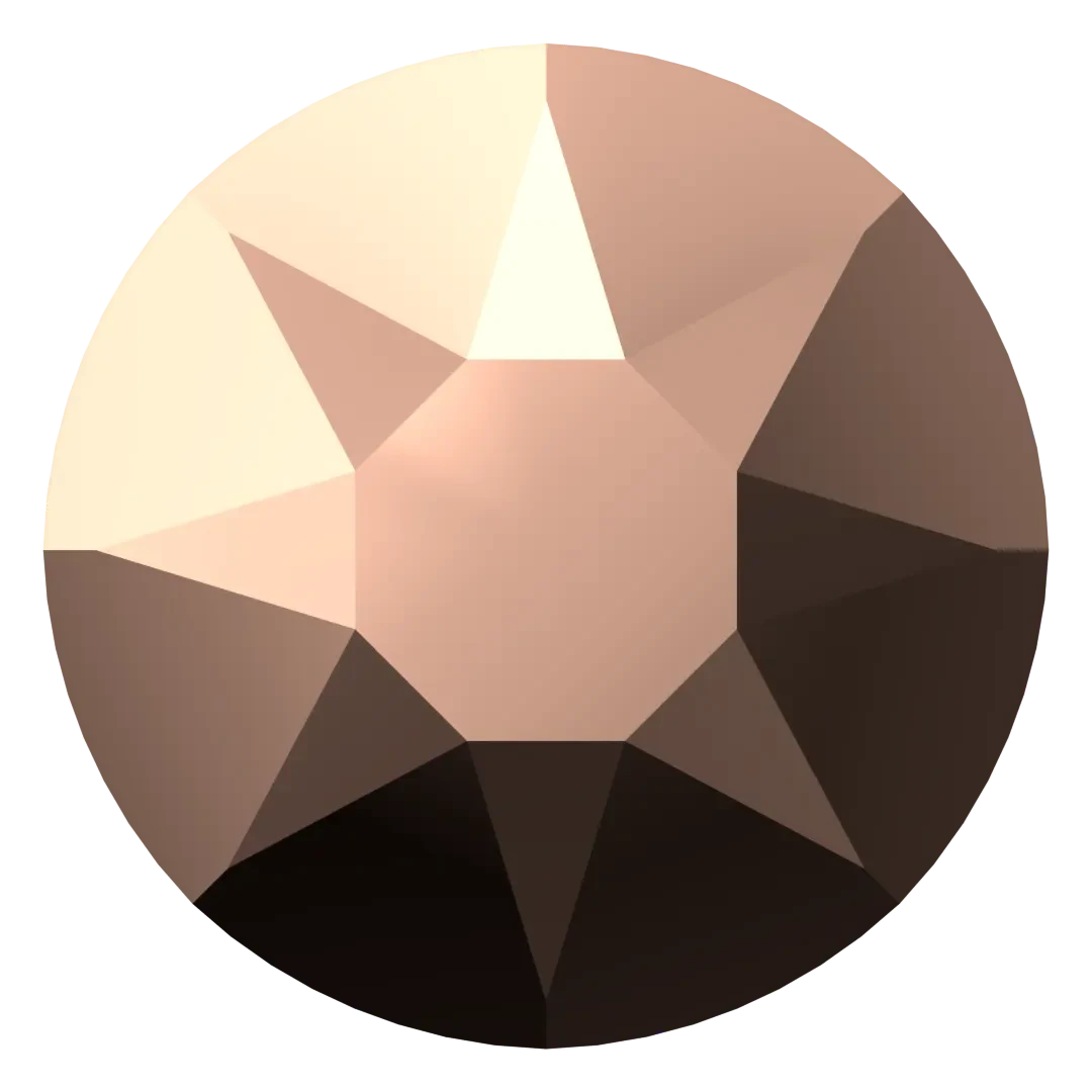 in Crystal Rose Gold are flat back crystals where the reverse side of the crystal has been pre-coated with a heat-sensitive glue. Crystal Rose Gold is a metallic colour that has become increasingly popular in recent years. It is a combination of gold and copper, with a hint of pink or rose tone. Crystal Rose Gold is often associated with luxury, elegance, and femininity and has a warm and romantic quality that makes it a popular choice for jewellery and fashion accessories. Crystal Rose Gold is a beautiful and sophisticated colour that can add a touch of luxury and romance to any design project. Its warm and inviting tone makes it a popular choice for a wide range of applications, from fashion to interior design.