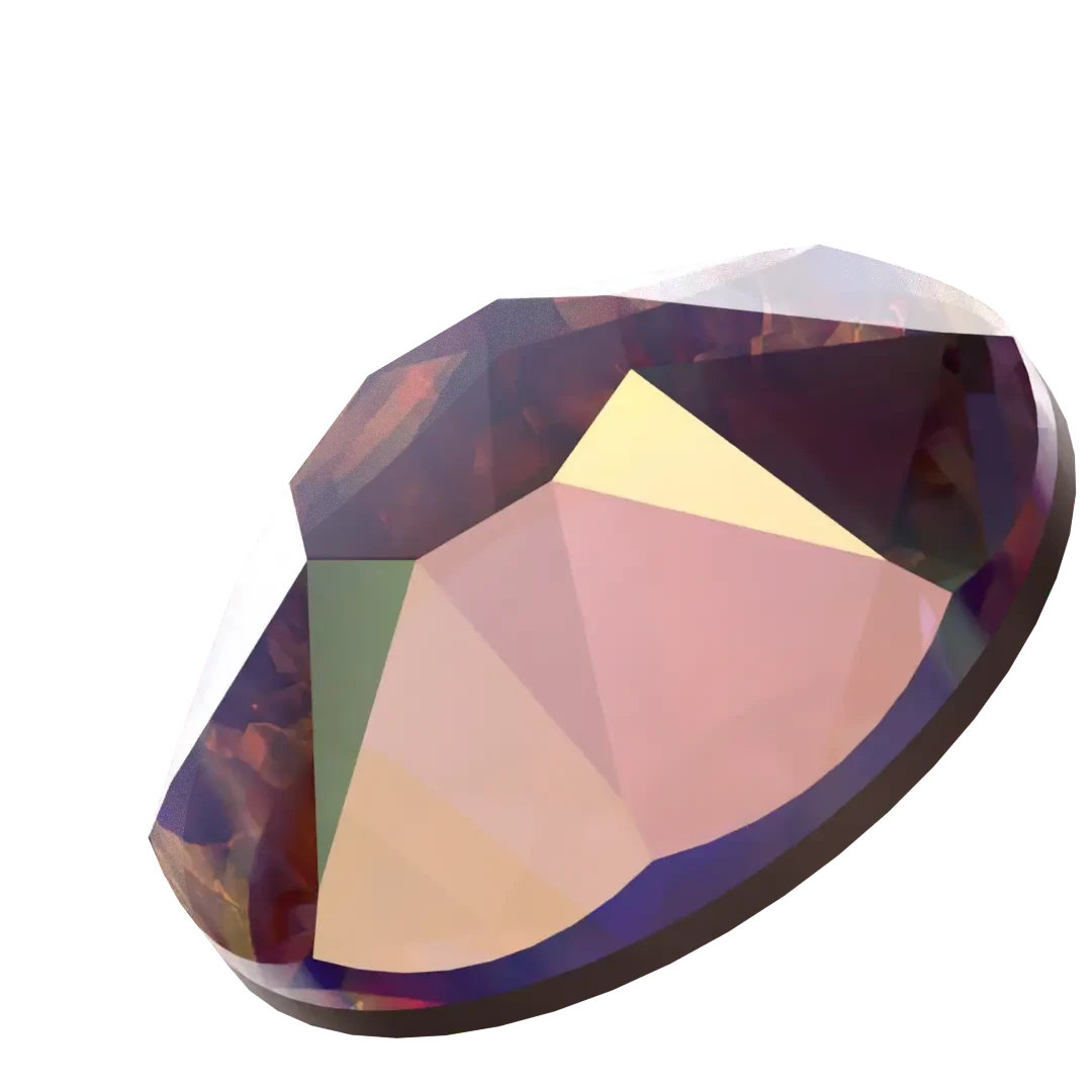 in Light Rose AB are flat back crystals where the reverse side of the crystal has been pre-coated with a heat-sensitive glue. Light Rose AB is a soft, pastel shade of pink that is similar in colour to the petals of a pale pink rose flower. It is a delicate and romantic colour that is often associated with femininity, sweetness, and innocence. Light Rose AB is a popular colour in fashion and jewellery design, particularly in spring and summer months. It is often used in clothing, accessories, and home decor items to create a fresh and cheerful look. The AB (Aurora Borealis) effect is an iridescent coating that covers the top of the crystal, making it shimmer like a rainbow. The base colour of the crystal can still be seen underneath but there is a noticeable pink and blue shine to it as it hits the light.