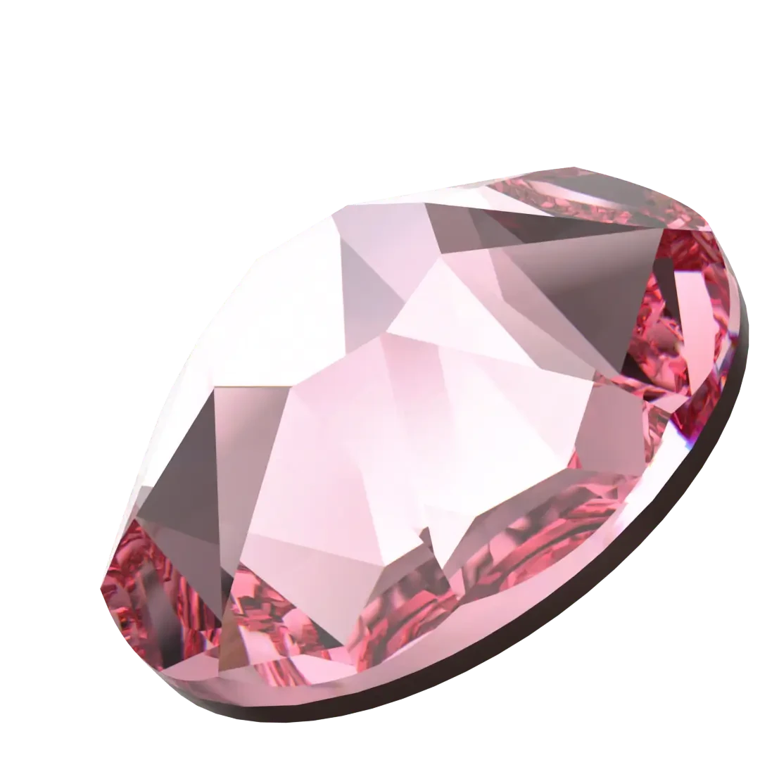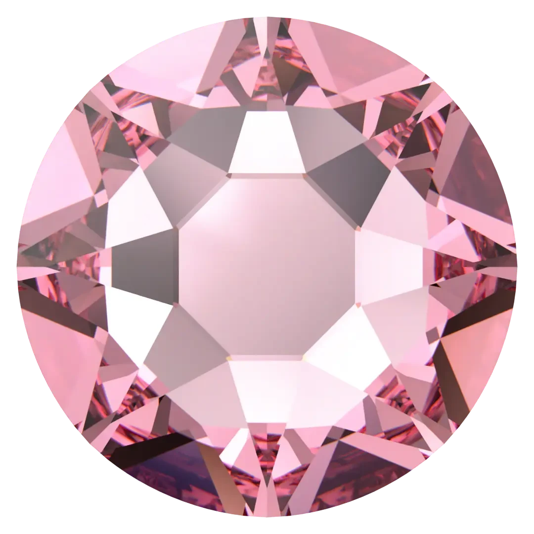 in Light Rose are flat back crystals where the reverse side of the crystal has been pre-coated with a heat-sensitive glue. Light Rose is a soft, pastel shade of pink that is similar in colour to the petals of a pale pink rose flower. It is a delicate and romantic colour that is often associated with femininity, sweetness, and innocence. Light Rose is a popular colour in fashion and jewellery design, particularly in spring and summer months. It is often used in clothing, accessories, and home decor items to create a fresh and cheerful look.