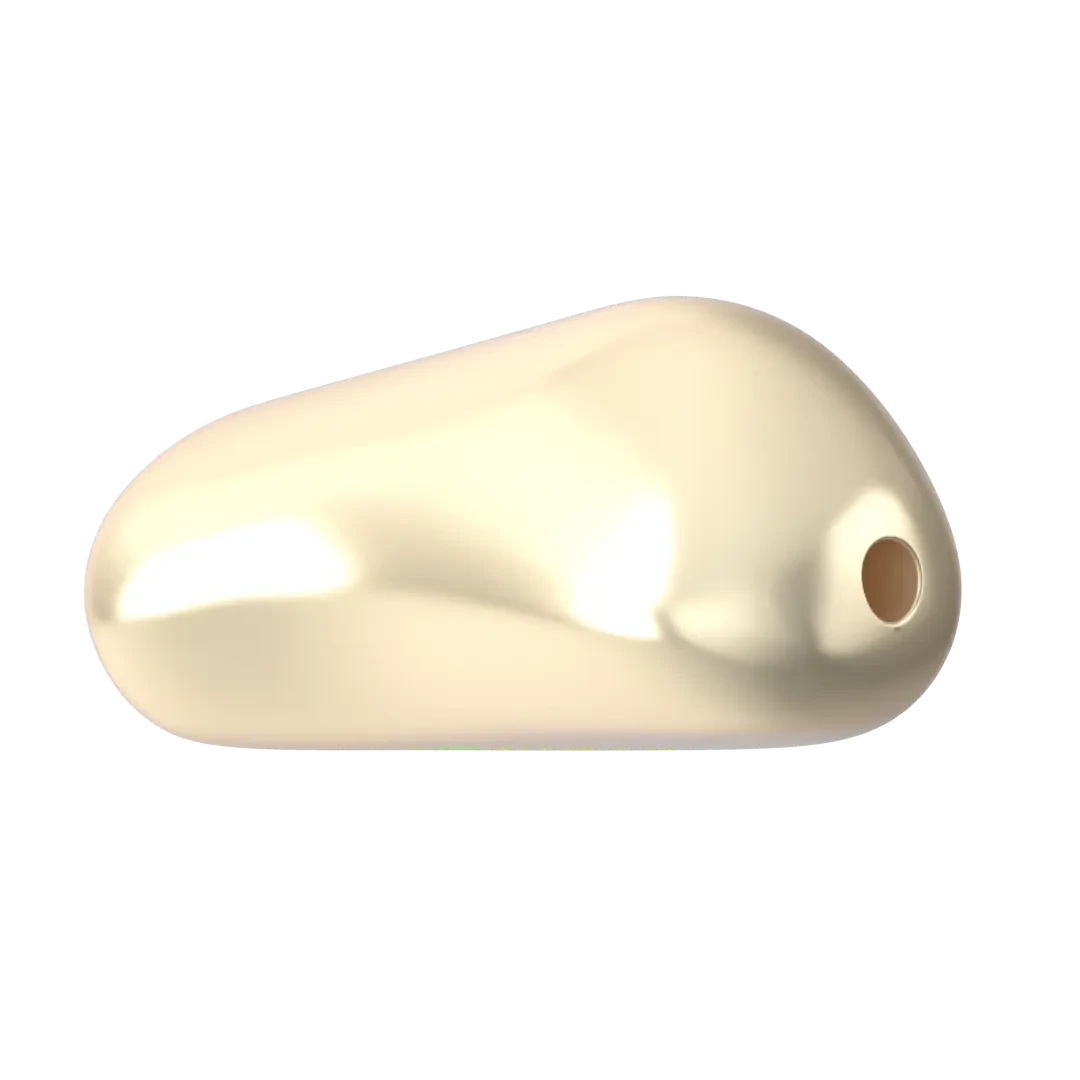 Swarovski pearls Baroque Elongated (5844) in Crystal Cream have a crystal ball core with a silky smooth coating, giving them the appearance of cultivated pearls. Swarovski Baroque Elongated shaped pearls have an irregular and asymmetrical shape, unlike the more traditional pearls. The term “baroque” is derived from the art and architecture of the baroque period, which was characterized by elaborate and ornate designs.