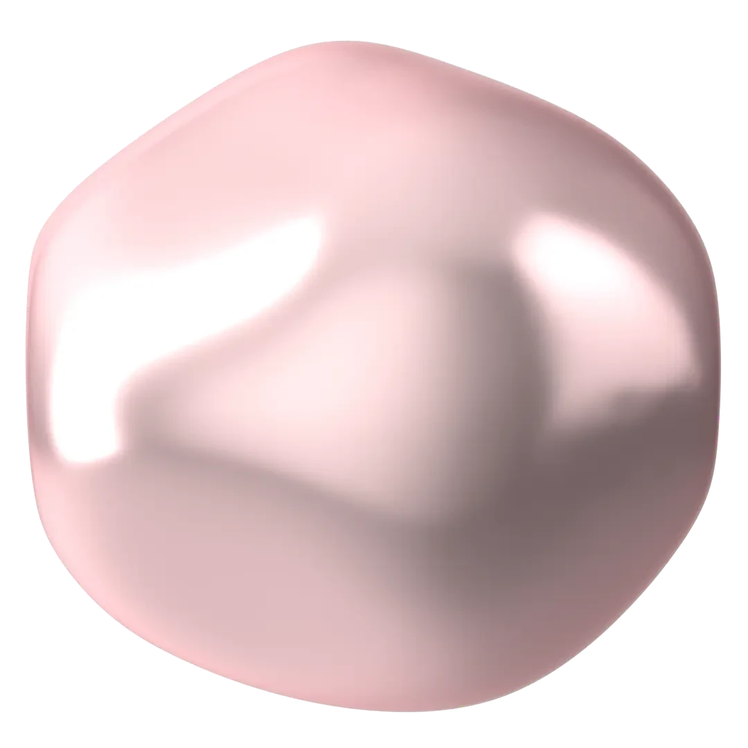 Swarovski pearls Baroque Round (5841) in Crystal Rosaline have a crystal ball core with a silky smooth coating, giving them the appearance of cultivated pearls. Swarovski Baroque shaped pearls have an irregular and asymmetrical shape, unlike the more traditional round-shaped pearls. The term “baroque” is derived from the art and architecture of the baroque period, which was characterized by elaborate and ornate designs.