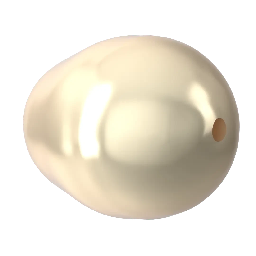 Swarovski pearls Pear (5821) in Crystal Cream have a crystal ball core with a silky smooth coating, giving them the appearance of cultivated pearls. Swarovski pear shaped pearls are traditional pear in shape and are characterized by their elongated body, rounded bottom, and tapering point at the top, similar to a pear fruit. They offer a distinct alternative to the more commonly seen spherical or round pearls.