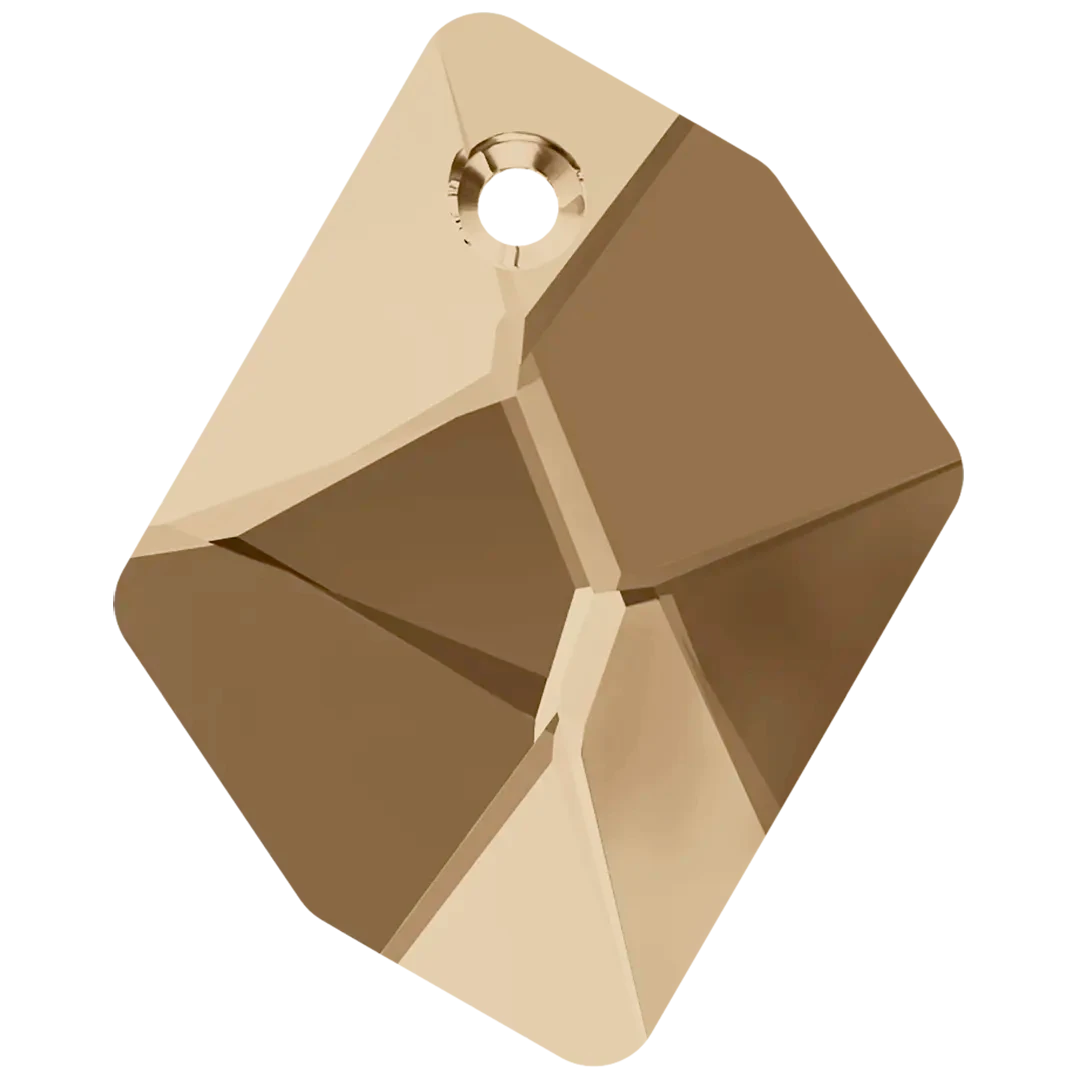 Swarovski pendants Cosmic (6680) in Crystal Golden Shadow are multi faceted crystals with a thread hole at the top enabling them to be attached to a chain or finding to create a piece of jewellery. Swarovski Cosmic shaped crystals have a rectangular shape and a raised centre, giving them a three-dimensional appearance. The surface of the crystal is multi-faceted, with a complex pattern that creates a stunning sparkle and shine. The cosmic shape is designed to resemble a small galaxy or cosmic explosion, making it a unique and eye-catching addition to any design.