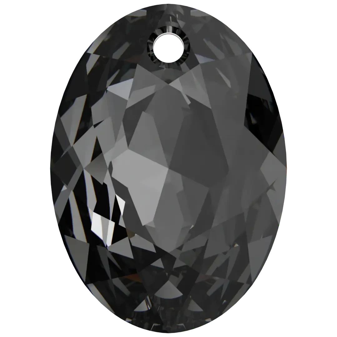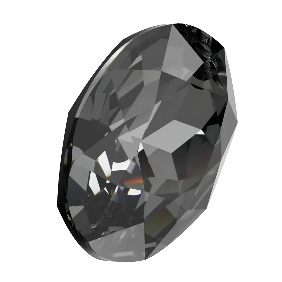 Swarovski pendants Elliptic Cut (6438) in Crystal Silver Night are multi faceted crystals with a thread hole at the top enabling them to be attached to a chain or finding to create a piece of jewellery. Swarovski Elliptic Cut shaped crystal pendants are oval with facets’ on both sides, to create a sparkling, multi-dimensional effect that catches and reflects the light beautifully.