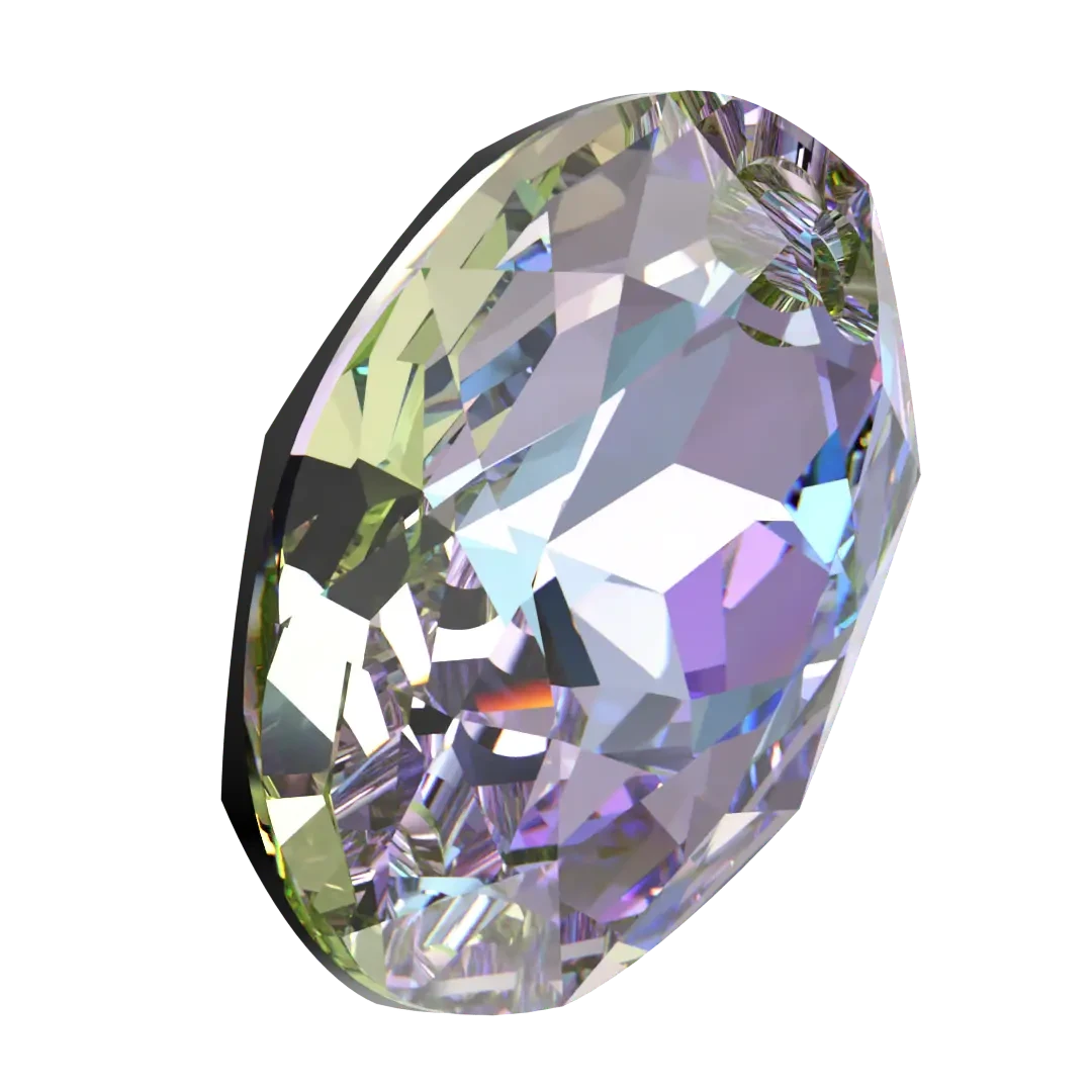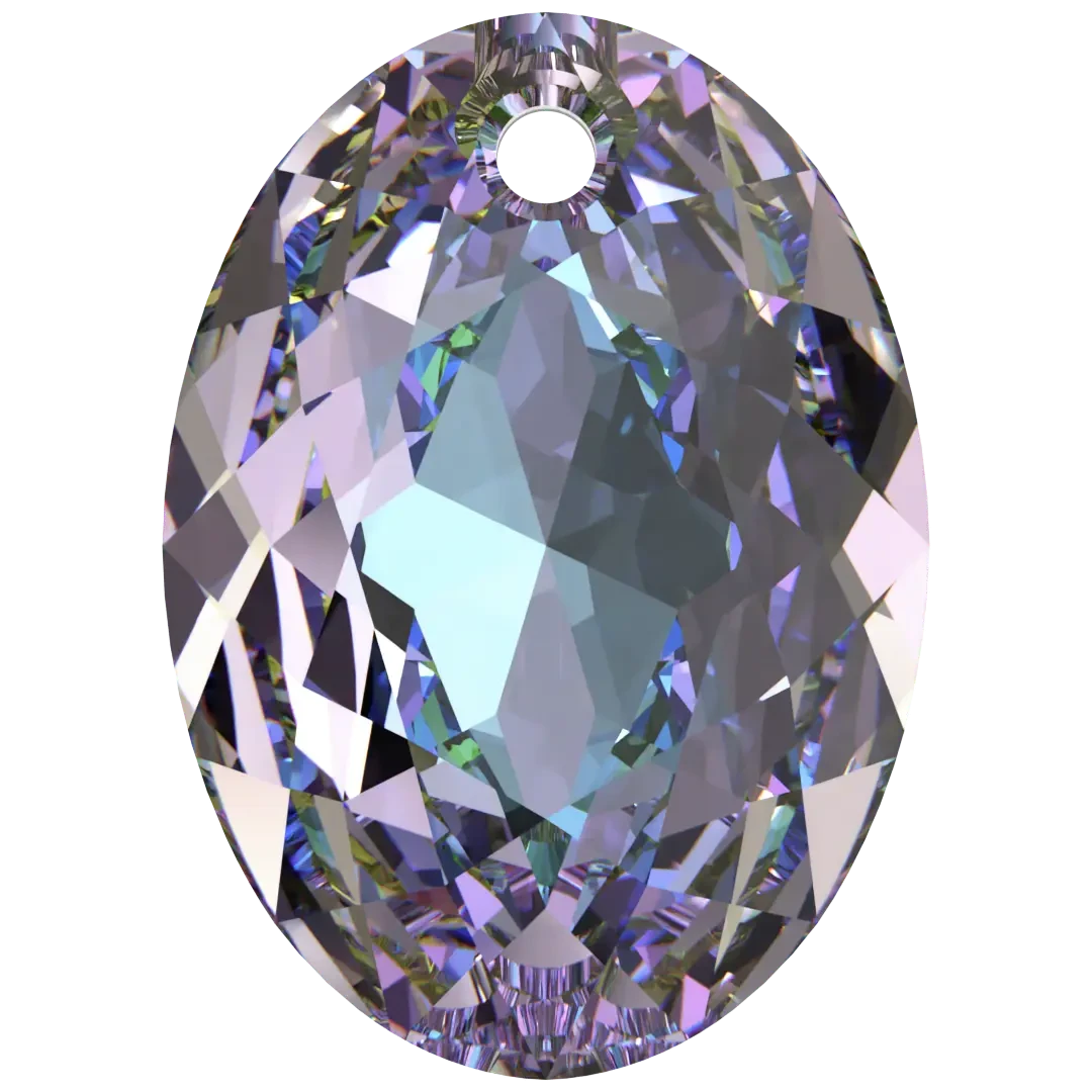 Swarovski pendants Elliptic Cut (6438) in Crystal Vitrail Light P are multi faceted crystals with a thread hole at the top enabling them to be attached to a chain or finding to create a piece of jewellery. Swarovski Elliptic Cut shaped crystal pendants are oval with facets’ on both sides, to create a sparkling, multi-dimensional effect that catches and reflects the light beautifully.