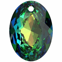Swarovski pendants Elliptic Cut (6438) in Crystal Vitrail Medium P are multi faceted crystals with a thread hole at the top enabling them to be attached to a chain or finding to create a piece of jewellery. Swarovski Elliptic Cut shaped crystal pendants are oval with facets’ on both sides, to create a sparkling, multi-dimensional effect that catches and reflects the light beautifully.