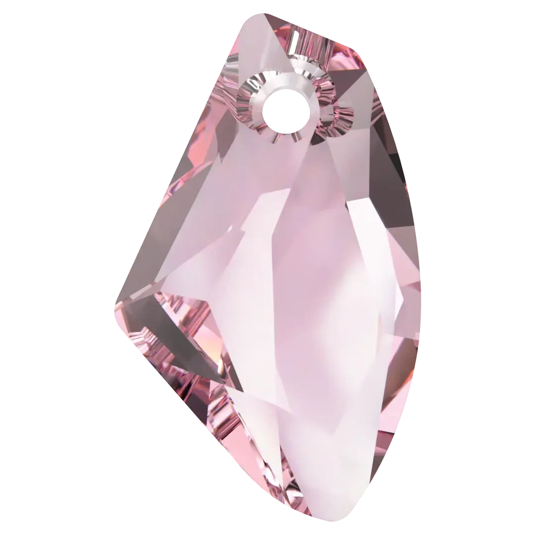 Swarovski pendants Galactic Vertical (6656) in Light Rose are multi faceted crystals with a thread hole at the top enabling them to be attached to a chain or finding to create a piece of jewellery. Swarovski Galactic Vertical pendant features a unique, cosmic-inspired shape with precise faceting that creates a stunning sparkle effect. The pendant has a modern and edgy look, perfect for contemporary designs. Its large hole allows for versatility in design and makes it easy to incorporate into a variety of jewellery pieces.