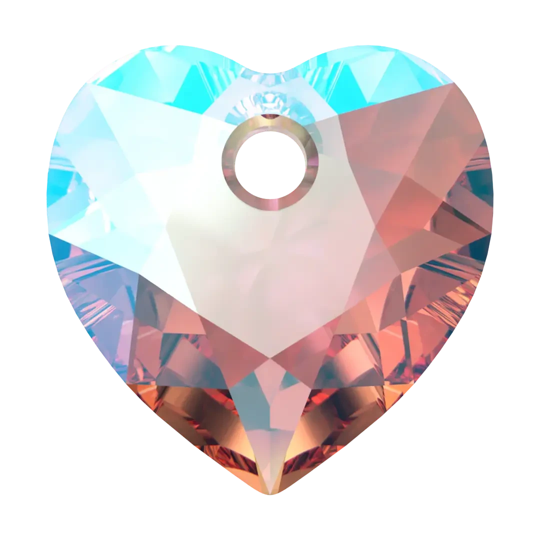 Swarovski pendants Heart Cut (6432) in Light Rose Shimmer are multi faceted crystals with a thread hole at the top enabling them to be attached to a chain or finding to create a piece of jewellery. Swarovski Heart Cut shaped crystals are not only classic and timeless, but their symmetrical faceted crystal cut on the face of the heart also creates a fantastic shine that radiates from every angle, capturing the attention of anyone who beholds them.