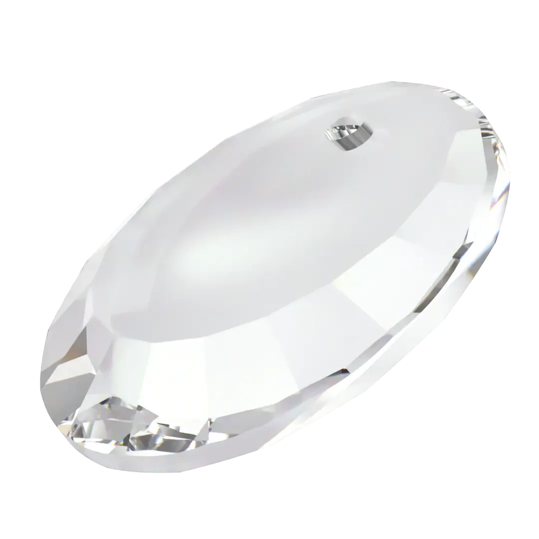 Swarovski pendants Lunar (6210) in Crystal are multi faceted crystals with a thread hole at the top enabling them to be attached to a chain or finding to create a piece of jewellery. Swarovski Lunar pendant is a flat, circular disc with a hole at the top for attaching to a chain or cord. Its regular side facets are designed to refract light beautifully, while the broader facets at the bottom create stunning brilliance.