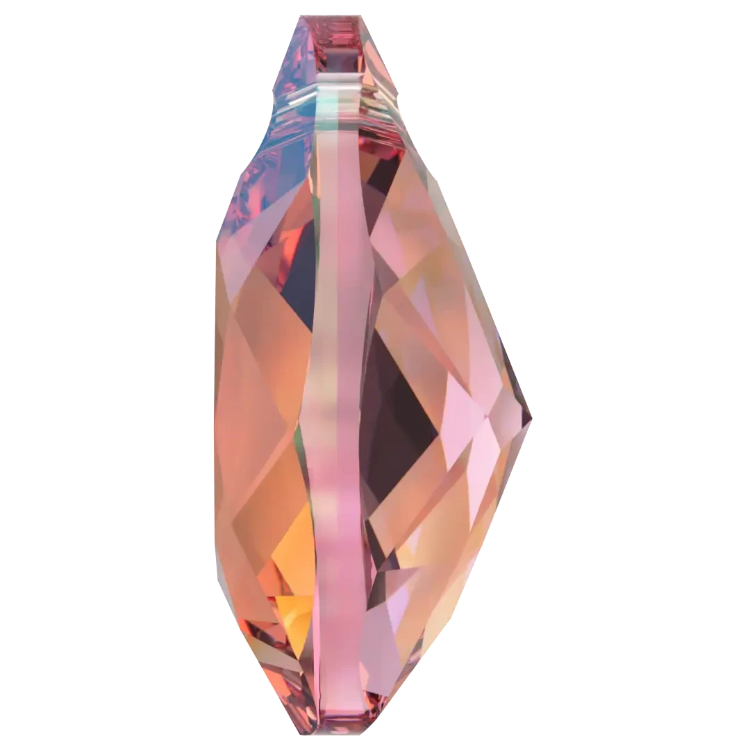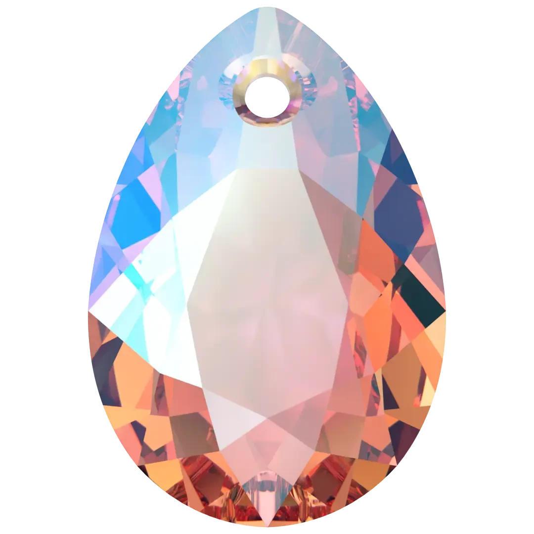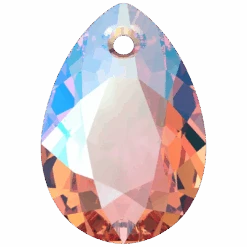 Swarovski pendants Pear Cut (6433) in Light Rose Shimmer are multi faceted crystals with a thread hole at the top enabling them to be attached to a chain or finding to create a piece of jewellery. Swarovski Pear Cut shaped crystals are traditional pear in shape with a rounded bottom and a pointed top. They have a symmetrical shape with a faceted surface that creates a brilliant shine and sparkle.