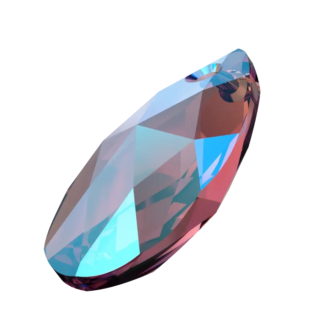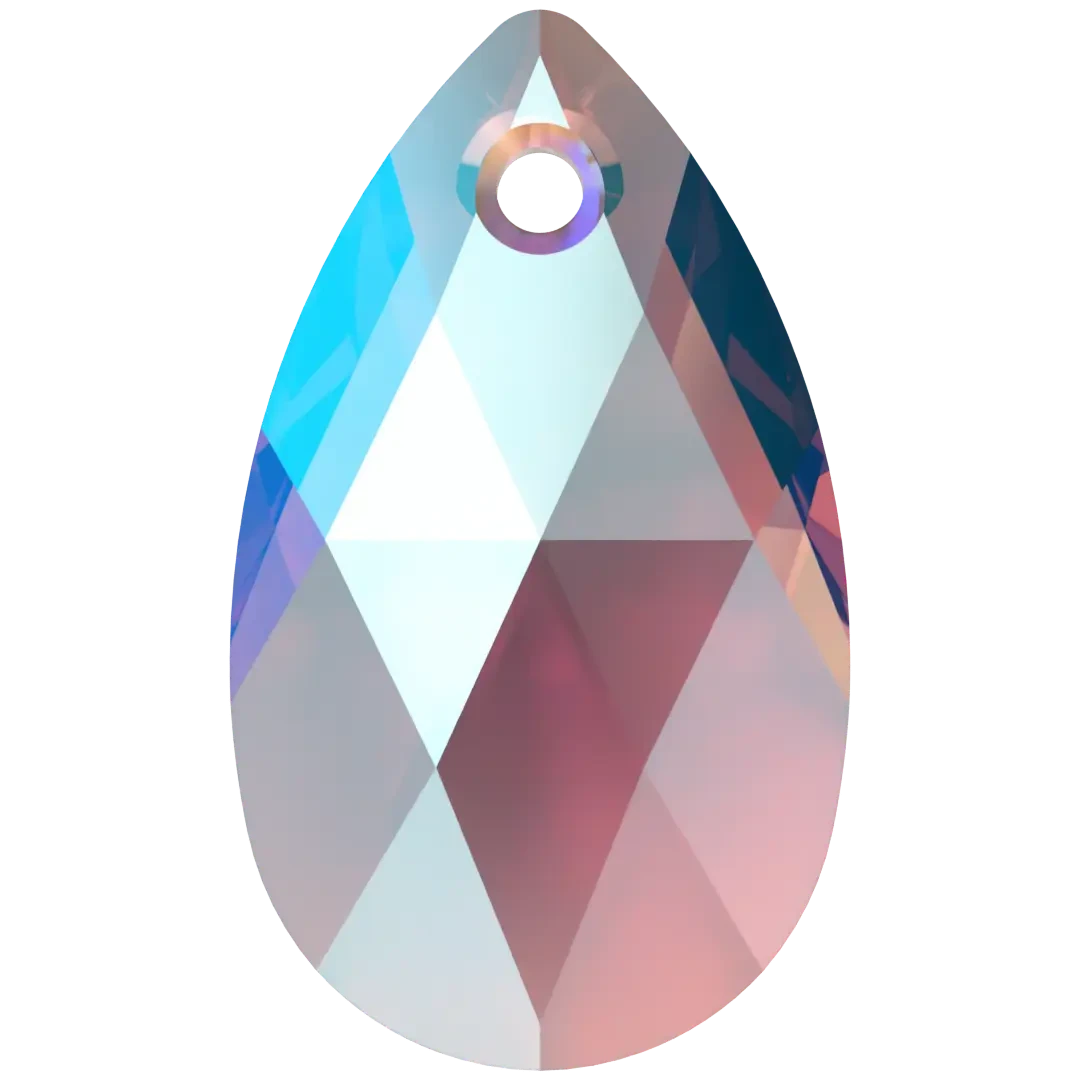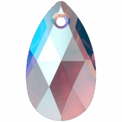 Swarovski pendants Peardrop (6106) in Amethyst Shimmer are multi faceted crystals with a thread hole at the top enabling them to be attached to a chain or finding to create a piece of jewellery. Swarovski Peardrop shaped crystals are traditional pear in shape with a rounded bottom and a pointed top. They have a symmetrical shape with a faceted surface that creates a brilliant shine and sparkle.