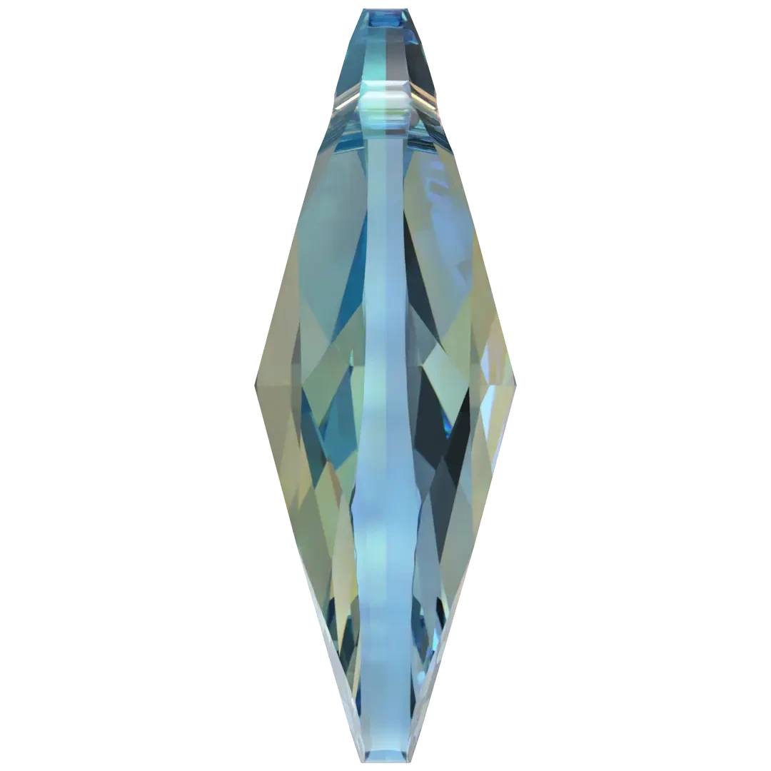 Swarovski pendants Peardrop (6106) in Aquamarine Shimmer are multi faceted crystals with a thread hole at the top enabling them to be attached to a chain or finding to create a piece of jewellery. Swarovski Peardrop shaped crystals are traditional pear in shape with a rounded bottom and a pointed top. They have a symmetrical shape with a faceted surface that creates a brilliant shine and sparkle.