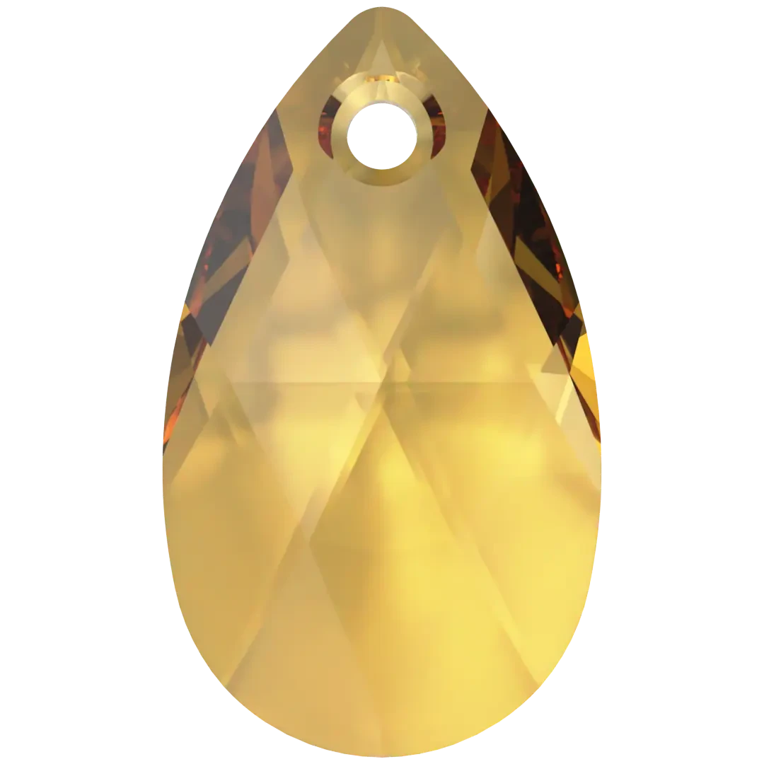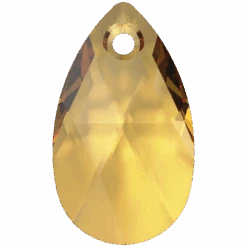 Swarovski pendants Peardrop (6106) in Golden Topaz are multi faceted crystals with a thread hole at the top enabling them to be attached to a chain or finding to create a piece of jewellery. Swarovski Peardrop shaped crystals are traditional pear in shape with a rounded bottom and a pointed top. They have a symmetrical shape with a faceted surface that creates a brilliant shine and sparkle.