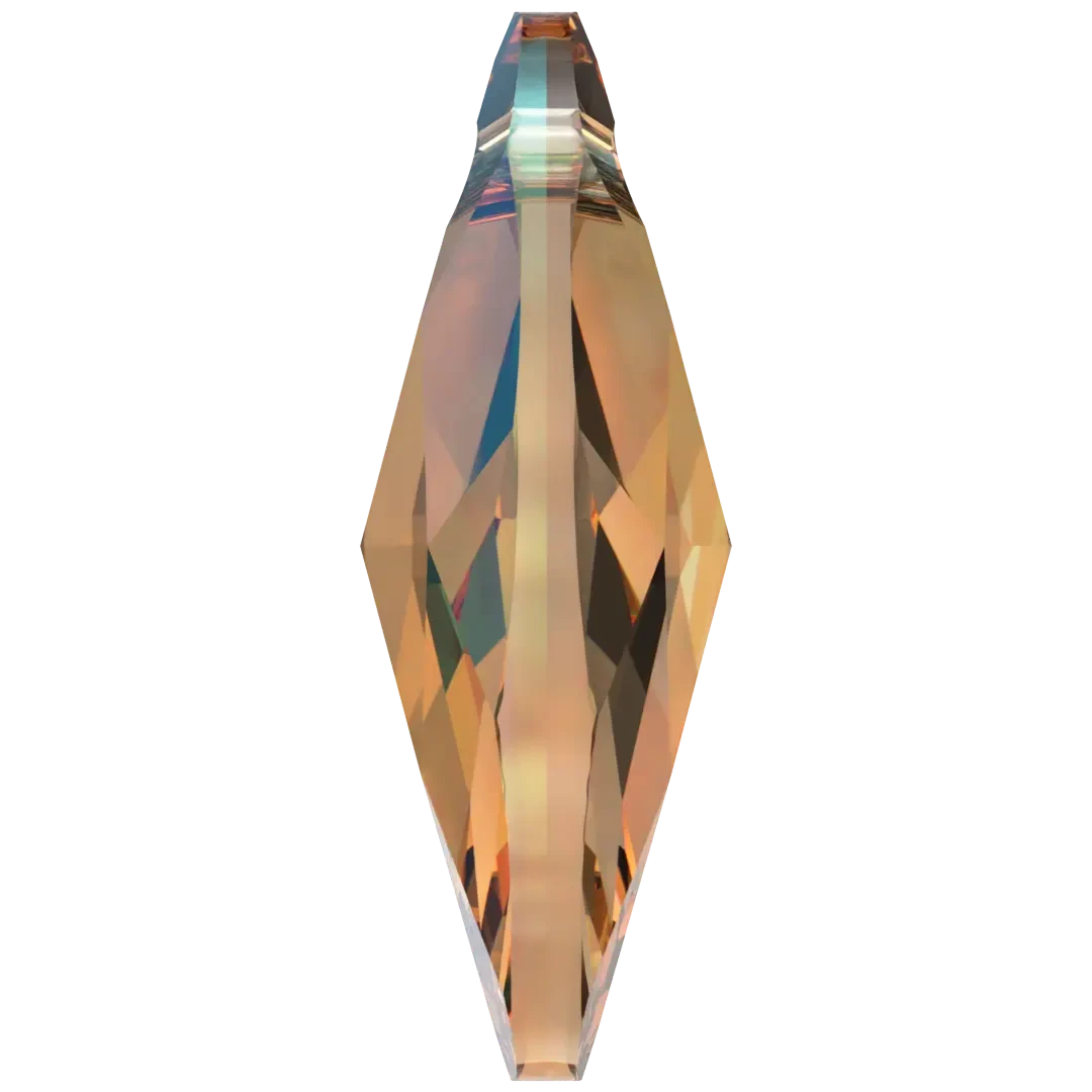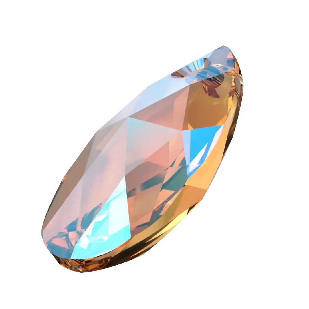 Swarovski pendants Peardrop (6106) in Light Colorado Topaz Shimmer are multi faceted crystals with a thread hole at the top enabling them to be attached to a chain or finding to create a piece of jewellery. Swarovski Peardrop shaped crystals are traditional pear in shape with a rounded bottom and a pointed top. They have a symmetrical shape with a faceted surface that creates a brilliant shine and sparkle.