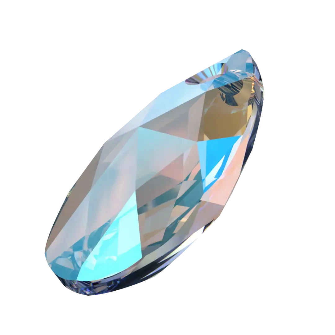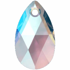 Swarovski pendants Peardrop (6106) in Light Sapphire Shimmer are multi faceted crystals with a thread hole at the top enabling them to be attached to a chain or finding to create a piece of jewellery. Swarovski Peardrop shaped crystals are traditional pear in shape with a rounded bottom and a pointed top. They have a symmetrical shape with a faceted surface that creates a brilliant shine and sparkle.