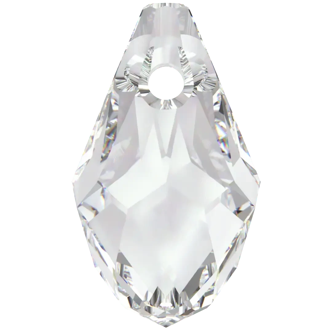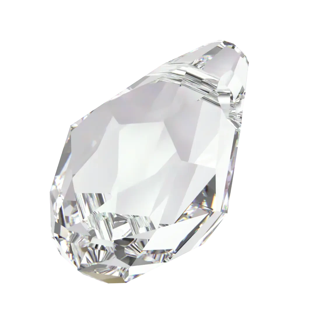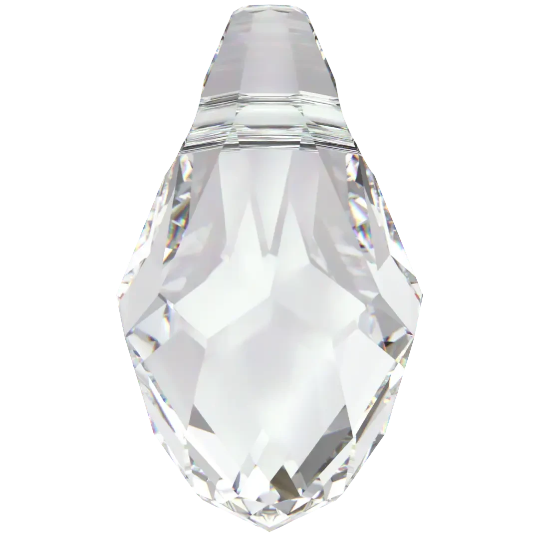 Swarovski pendants Small Briolette (6007) in Crystal are multi faceted crystals with a thread hole at the top enabling them to be attached to a chain or finding to create a piece of jewellery. Swarovski Small Briolette pendants are designed with a unique teardrop shape that is expertly cut using the briolette technique. The briolette cut involves shaping the crystal into a series of symmetrical, triangular or diamond-shaped facets that reflect light brilliantly from every angle. This cut gives the crystal a stunning and sparkling appearance that is sure to catch the eye.