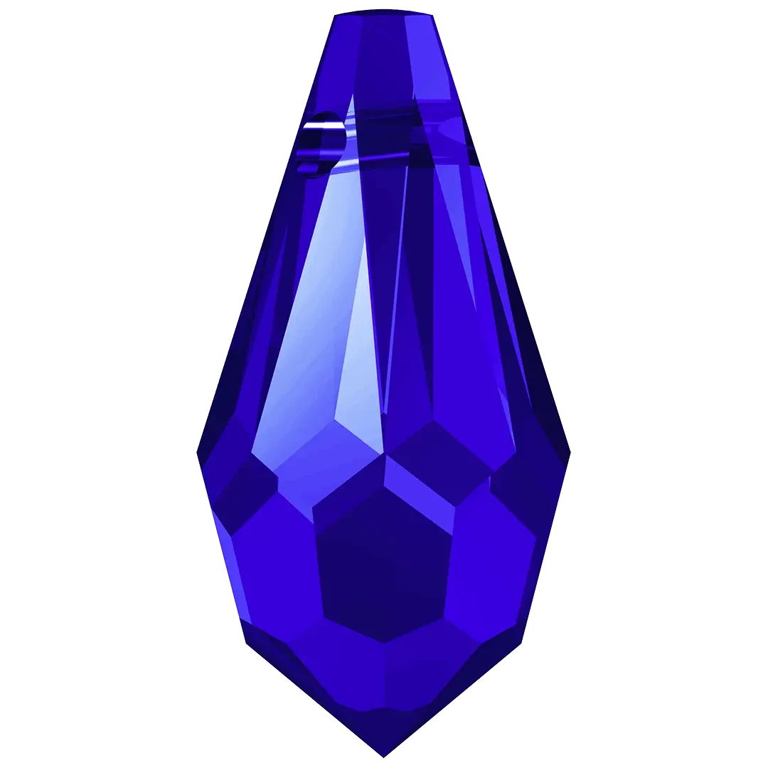 Swarovski pendants Teardrop (6000) in Majestic Blue are multi faceted crystals with a thread hole at the top enabling them to be attached to a chain or finding to create a piece of jewellery. Swarovski Teardrop shaped crystals have a distinctive teardrop shape. They have a pointed top and a rounded bottom with facets arranged in a symmetrical pattern, which create a dazzling play of light and reflection.