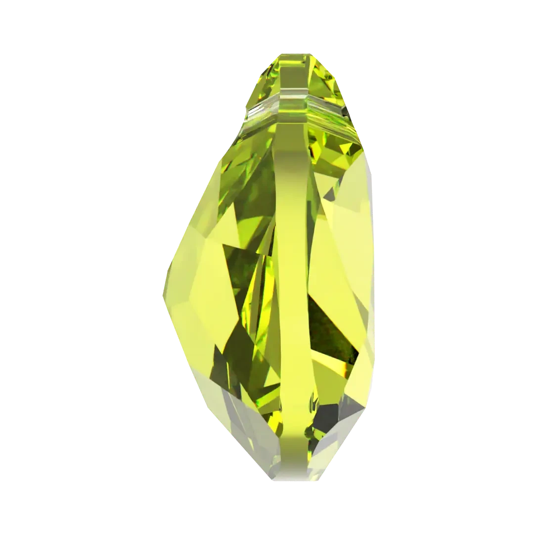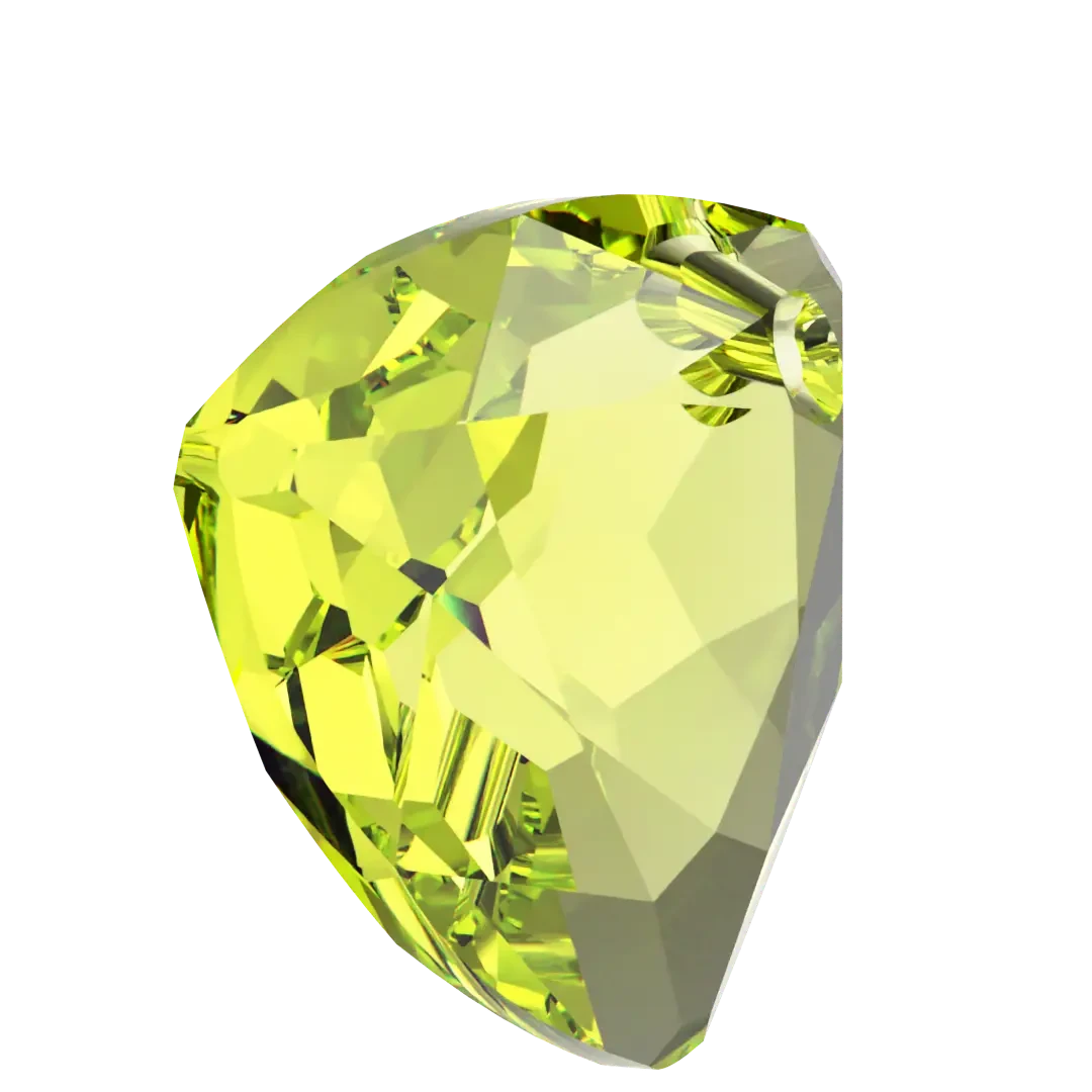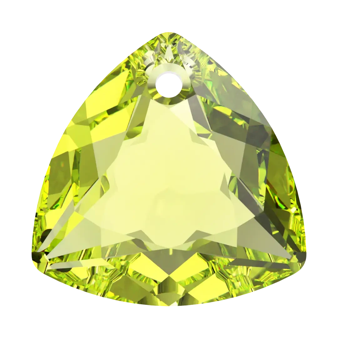 Swarovski pendants Trilliant Cut (6434) in Citrus Green are multi faceted crystals with a thread hole at the top enabling them to be attached to a chain or finding to create a piece of jewellery. Swarovski Trilliant Cut shaped crystal refers to a specific cut of crystal that is triangular in shape with rounded corners. It has a faceted surface that captures and reflects light beautifully, giving it a stunning sparkle.