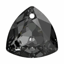 Swarovski pendants Trilliant Cut (6434) in Crystal Silver Night are multi faceted crystals with a thread hole at the top enabling them to be attached to a chain or finding to create a piece of jewellery. Swarovski Trilliant Cut shaped crystal refers to a specific cut of crystal that is triangular in shape with rounded corners. It has a faceted surface that captures and reflects light beautifully, giving it a stunning sparkle.