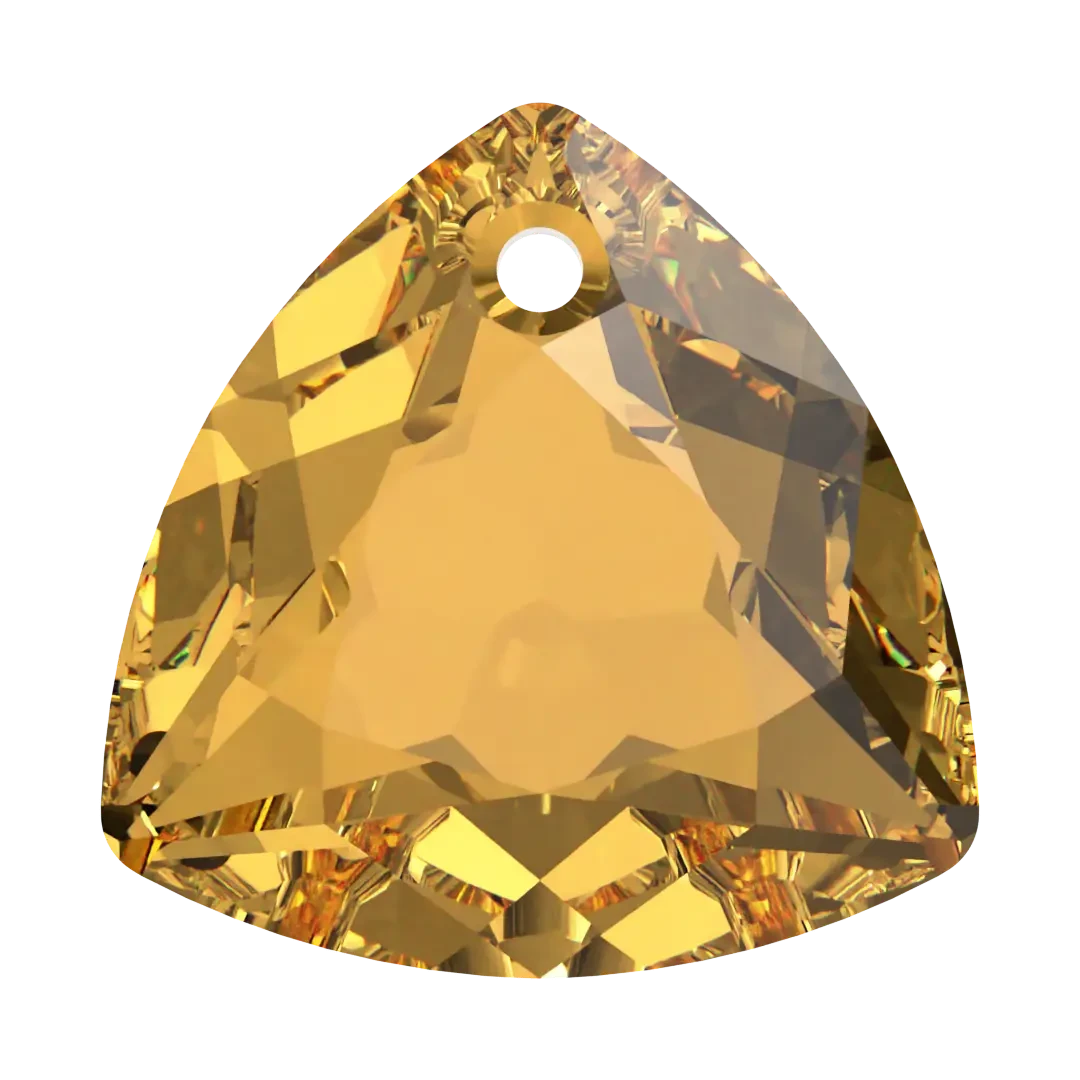 Swarovski pendants Trilliant Cut (6434) in Golden Topaz are multi faceted crystals with a thread hole at the top enabling them to be attached to a chain or finding to create a piece of jewellery. Swarovski Trilliant Cut shaped crystal refers to a specific cut of crystal that is triangular in shape with rounded corners. It has a faceted surface that captures and reflects light beautifully, giving it a stunning sparkle.