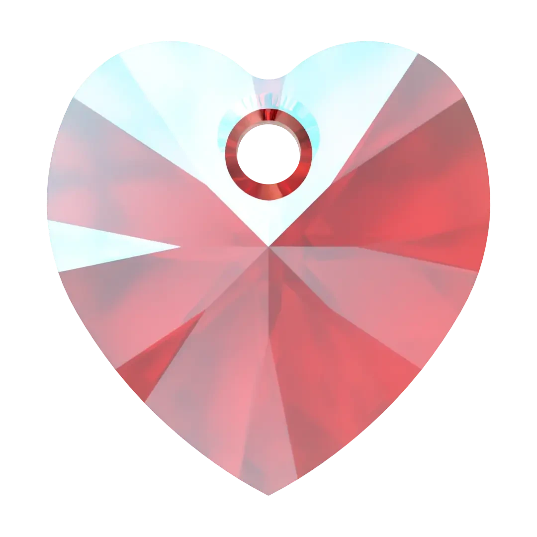 Swarovski pendants Xilion Heart (6228) in Light Siam Shimmer are multi faceted crystals with a thread hole at the top enabling them to be attached to a chain or finding to create a piece of jewellery. Swarovski Xilion Heart shaped crystals are not only classic and timeless, but their symmetrical faceted crystal cut on the face of the heart also creates a fantastic shine that radiates from every angle, capturing the attention of anyone who beholds them.
