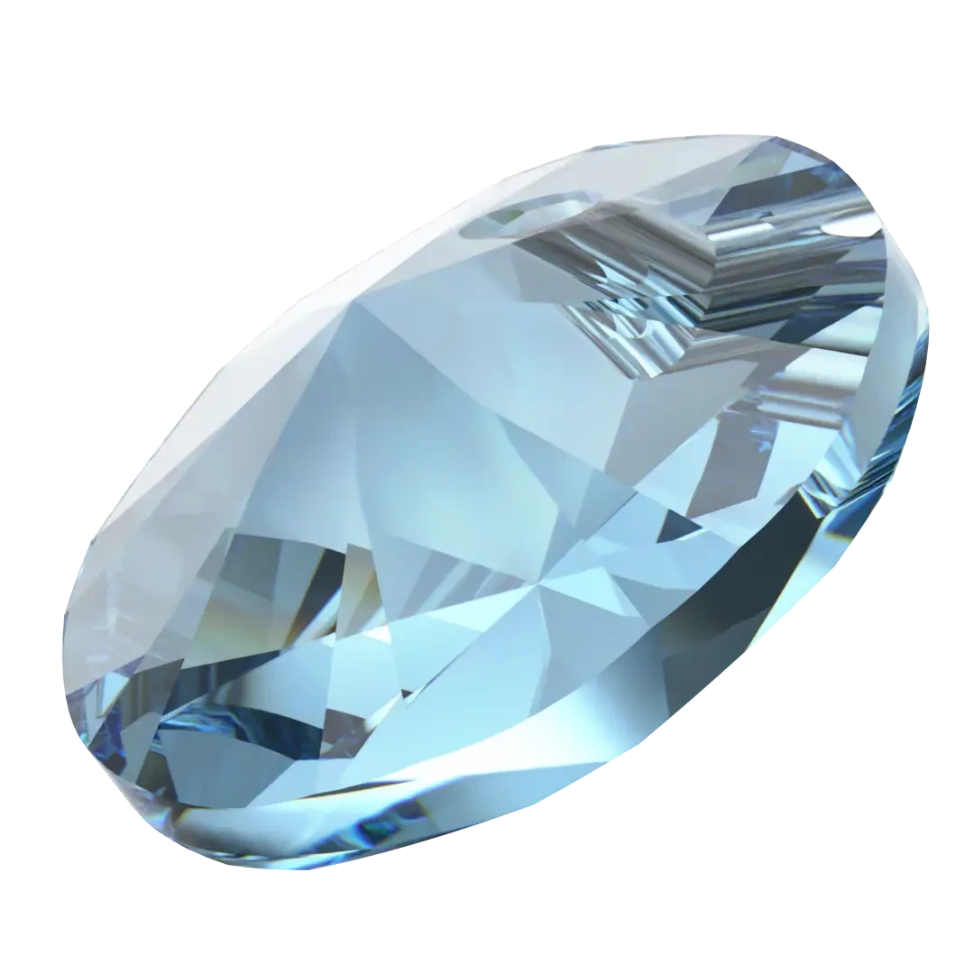 Swarovski pendants Xilion Round (6428) in Aquamarine are multi faceted crystals with a thread hole at the top enabling them to be attached to a chain or finding to create a piece of jewellery. Swarovski Xilion Round pendant features a classic round shape with a precisely cut Xilion pattern. This cut is designed with alternating large and small facets that enhance the pendant’s brilliance and create a stunning play of light and colour.