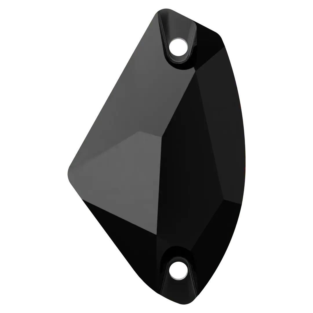Swarovski sew on crystals Galactic (3256) in Jet UNFOILED are loose flat backed crystals that come with a thread hole, enabling the crystals to be sewn onto fabric. Swarovski Galactic sew-on crystal has an unusual, space-inspired shape with intricate facets that produce a breath-taking glitter effect. This sew-on crystal has a modern and daring appearance that’s ideal for contemporary designs. With holes located at the top and bottom, it can be easily integrated into various embellishment designs.