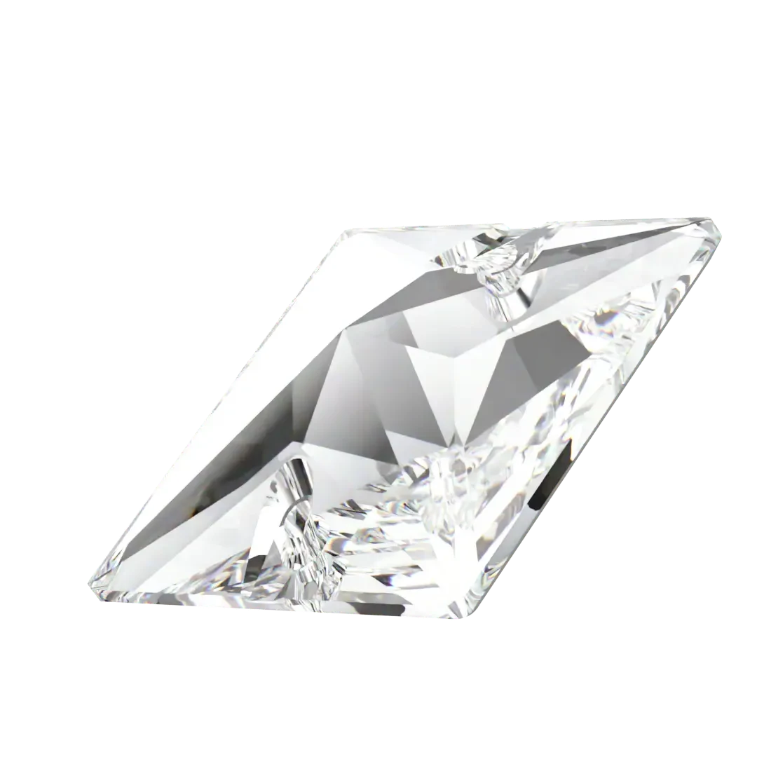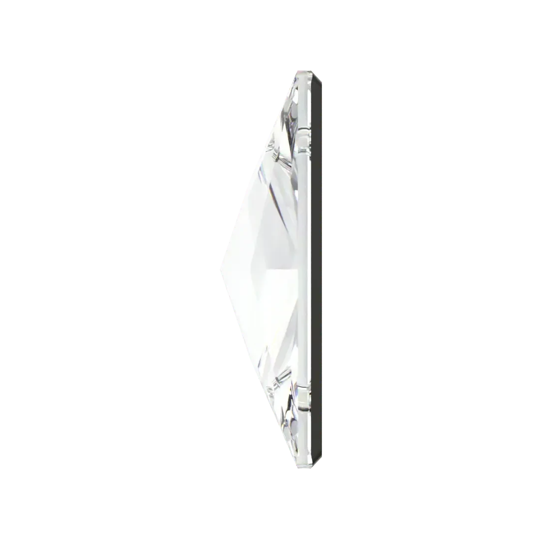 Swarovski sew on crystals Square (3240) in Crystal are loose flat backed crystals that come with a thread hole, enabling the crystals to be sewn onto fabric. Swarovski Square shaped crystals are a four-sided square shape that has a pointed top and simple bevelled edges. The faceting of the crystal is designed to reflect and refract light, with the slight bevel to create a softer look.