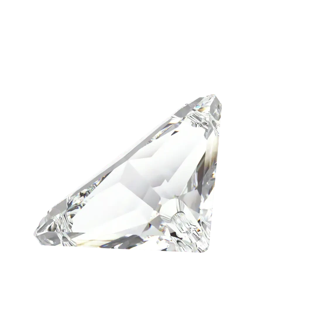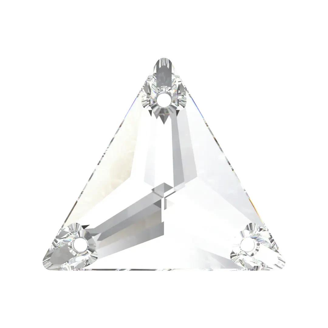Swarovski sew on crystals Triangle (3270) in Crystal are loose flat backed crystals that come with a thread hole, enabling the crystals to be sewn onto fabric. Swarovski Triangle shaped crystals are geometric in shape and feature three equal sides that come together to form a perfect triangle with a central point.
