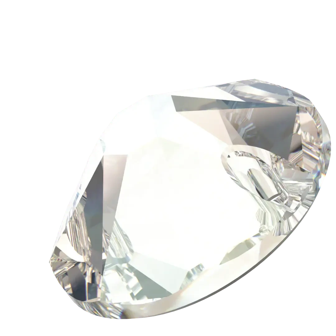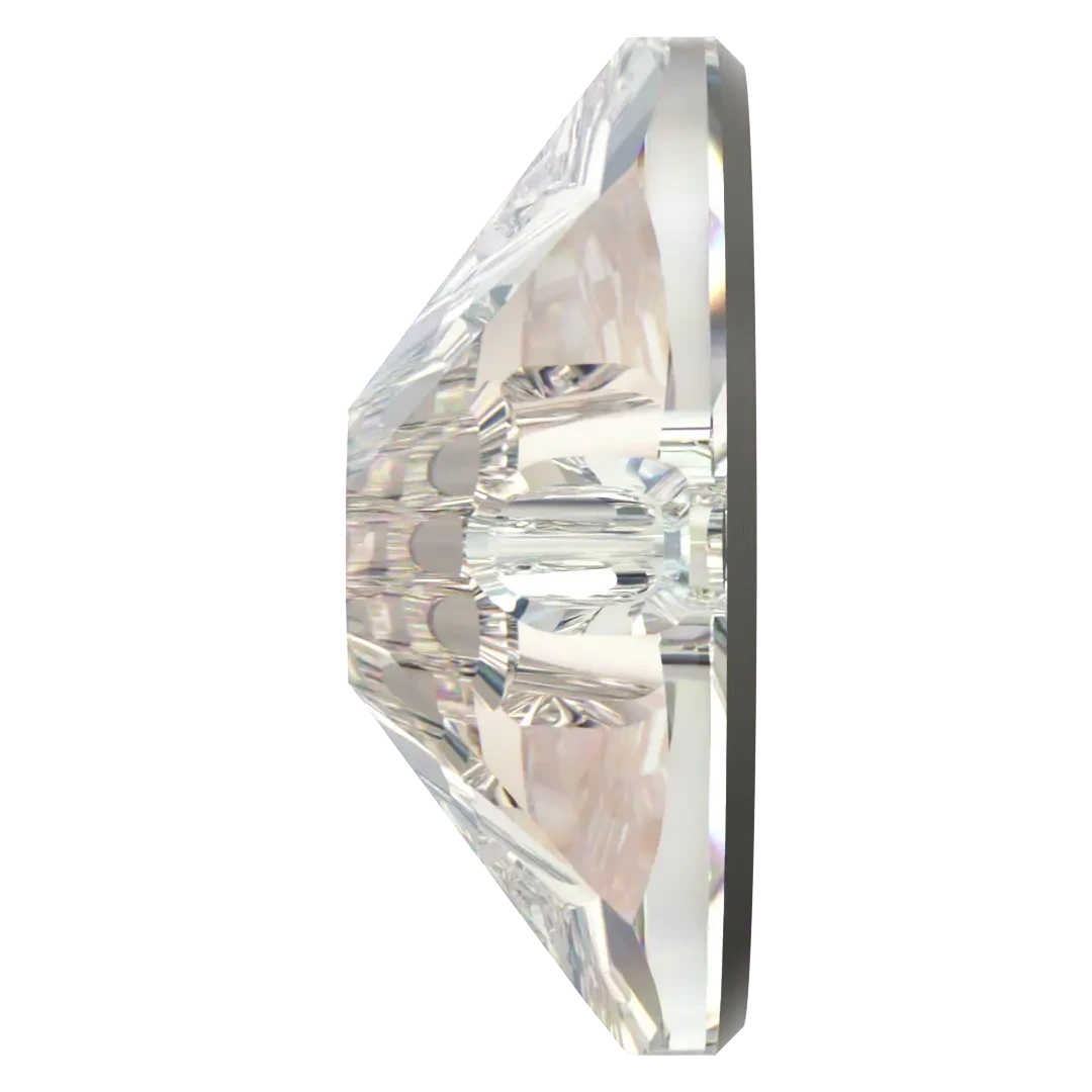Swarovski sew on crystals Xirius (3288) in Crystal Moonlight are loose flat backed crystals that come with a thread hole, enabling the crystals to be sewn onto fabric. Swarovski Xirius sew on stones have a patented cut that features a star shape with 16 facets on the top and 8 facets on the bottom, creating a complex and brilliant surface. Designed to maximize the number of facets on the surface of the crystal, the cut allows for increased light refraction and sparkle.