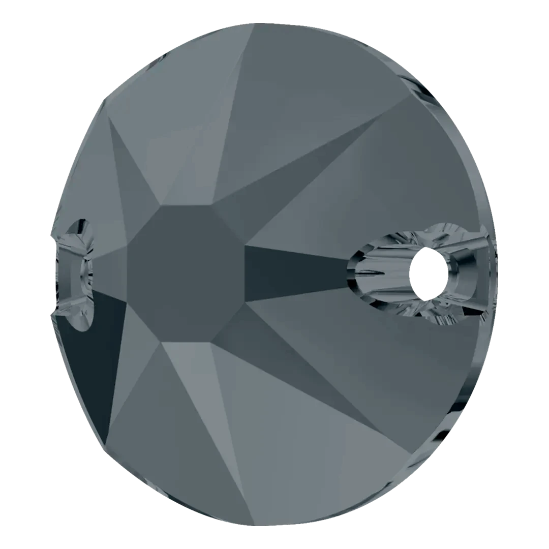 Swarovski sew on crystals Xirius (3288) in Crystal Silver Night are loose flat backed crystals that come with a thread hole, enabling the crystals to be sewn onto fabric. Swarovski Xirius sew on stones have a patented cut that features a star shape with 16 facets on the top and 8 facets on the bottom, creating a complex and brilliant surface. Designed to maximize the number of facets on the surface of the crystal, the cut allows for increased light refraction and sparkle.
