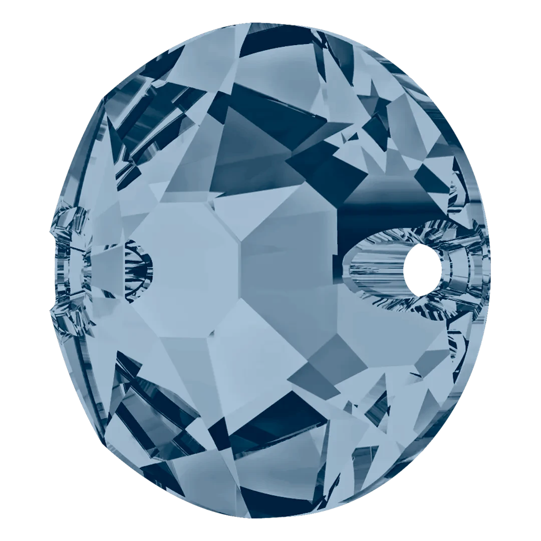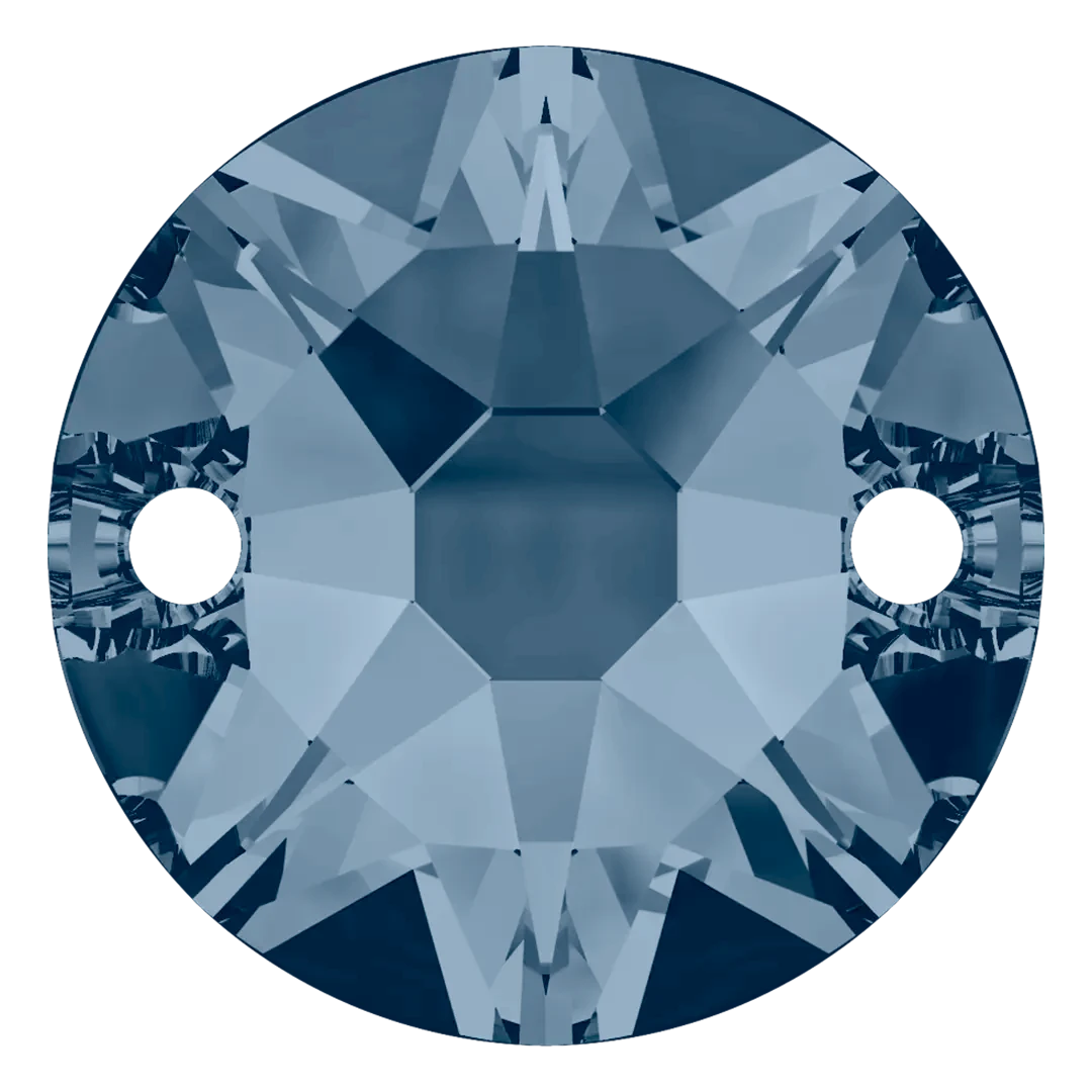Swarovski sew on crystals Xirius (3288) in Denim Blue are loose flat backed crystals that come with a thread hole, enabling the crystals to be sewn onto fabric. Swarovski Xirius sew on stones have a patented cut that features a star shape with 16 facets on the top and 8 facets on the bottom, creating a complex and brilliant surface. Designed to maximize the number of facets on the surface of the crystal, the cut allows for increased light refraction and sparkle.