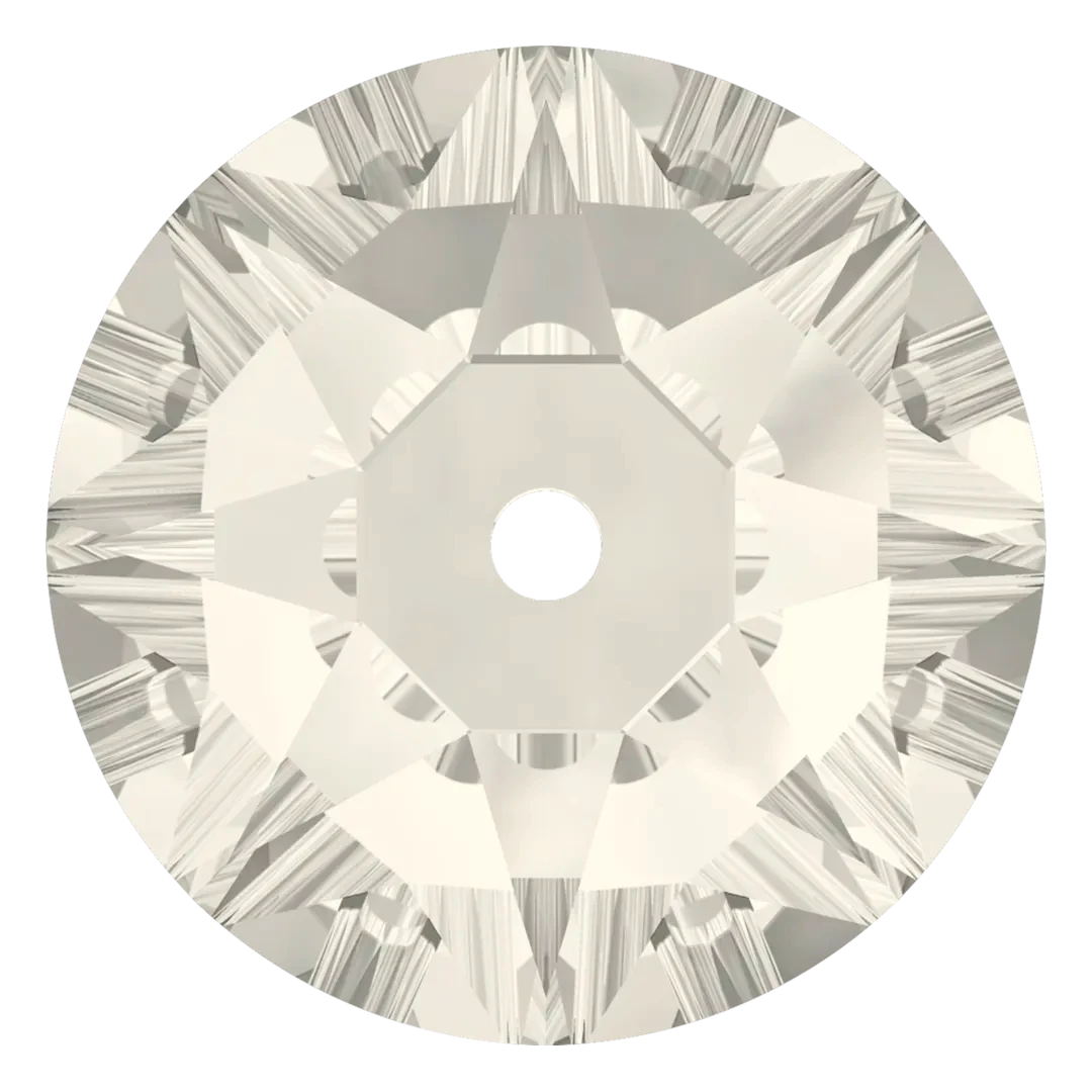 Swarovski sew on crystals Xirius Lochrose (3188) in Crystal Silver Shade are round flat backed crystals that come with a thread hole, enabling the crystals to be sewn onto fabric. Xirius Lochrose has a flat back that has one hole in the centre enabling the crystal to be easily sewn onto any type of textile or accessory. Its rounded edges guarantees thread protection making them suitable for any type of fabric embellishment.