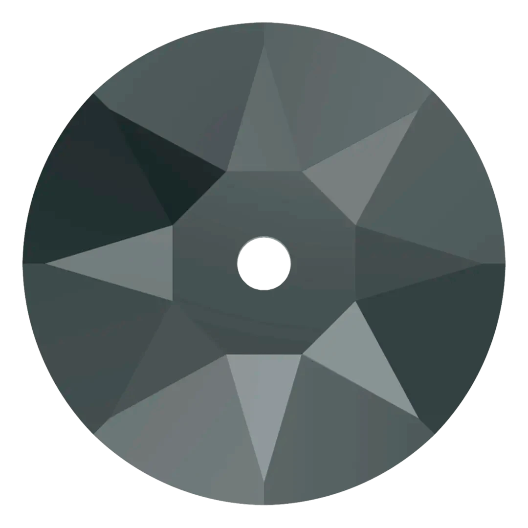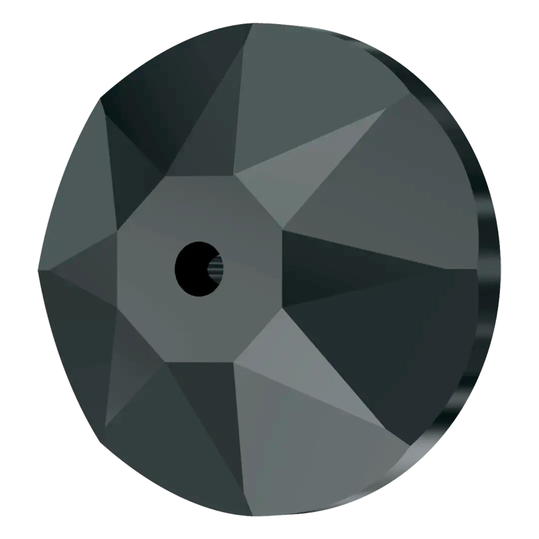 Swarovski sew on crystals Xirius Lochrose (3188) in Jet Hematite UNFOILED are round flat backed crystals that come with a thread hole, enabling the crystals to be sewn onto fabric. Xirius Lochrose has a flat back that has one hole in the centre enabling the crystal to be easily sewn onto any type of textile or accessory. Its rounded edges guarantees thread protection making them suitable for any type of fabric embellishment.
